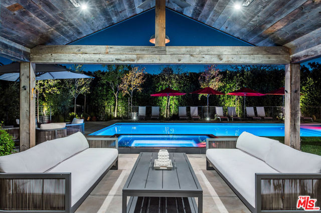 Located within the prestigious guard-gated community of Hidden Hills, this refined farmhouse awaits. Situated on a premier cul-de-sac street, this 7 bedrm, 9 bath ranch compound will not disappoint. As you approach, an inviting covered veranda welcomes you. Once inside the meticulously designed, open concept interior resonates a harmonious blend of natural materials including wide plank wood floors, French doors, and exquisite artful wall accents, creating an ambiance of unparalleled tranquility and comfort. The heart of the home is a generously sized great room and adjacent Chef's center island dream kitchen complete with top-of-the-line professional Stainless Steel appliances, Water Works designer faucets, one of 5 warming fireplaces and cozy breakfast area. A statement fireplace and a wall of retractable glass doors accentuate the sublime dining room ensuring an unforgettable dining experience and effortlessly integrates the much sought-after Southern California indoor/outdoor experience. The intimate living room offers a quiet retreat, perfectly suited for a glass of wine with friends or meditation. The sun filled primary bedroom and resort-inspired bathroom is a sanctuary within itself, featuring an oversized shower, soaking tub, dual water closets, custom walk-in closet and zen inspired garden patio. Three additional ensuite bedrooms complete the main bedroom wing, plus a second floor "dream come true" ensuite bedroom, bath,living room, built-in kitchenette and breakfast nook. Private lush grounds surround this idyllic residence and include an inviting swimmer's pool with zero-edge spa, patio with outdoor cooking station and multiple verandas. Additional living structures include a 1+1 guest cottage with private access and a detached guest house complete with living area,full kitchenette and poolside covered patio, ideal for guests, a private office, or possible recording studio. The private lushly landscaped grounds provide ample space for a barn, possible sports court or added grassy play area. Recognized as one of Southern California's most coveted gated communities Hidden Hills offers 35 miles of winding horse trails, community theatre and weekly Farmers Market. Beyond its immediate surroundings, Hidden Hills is conveniently located to The Commons of Calabasas, minutes from the Topanga Westfield Mall and The Village offering choice dining eateries, high end shopping and entertainment options. Hidden Hills is serviced by the nationally acclaimed Las Virgenes School District.