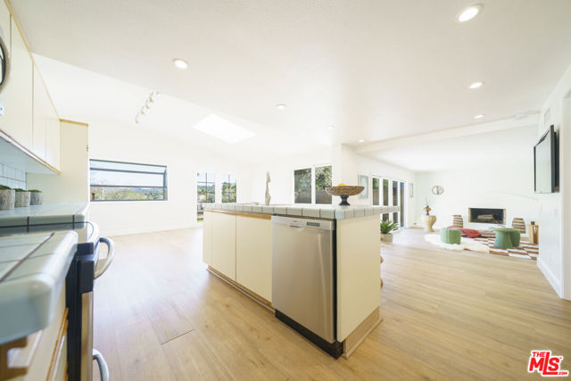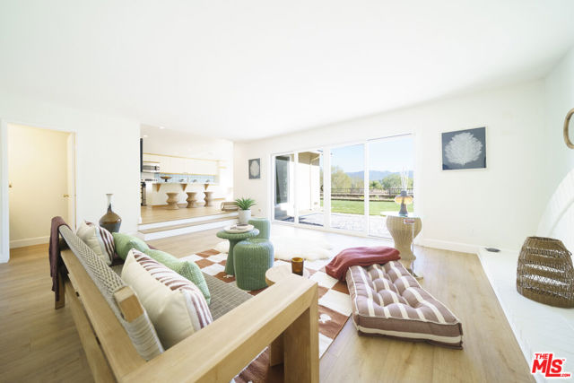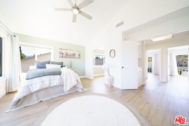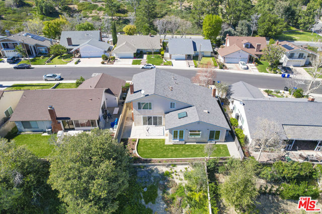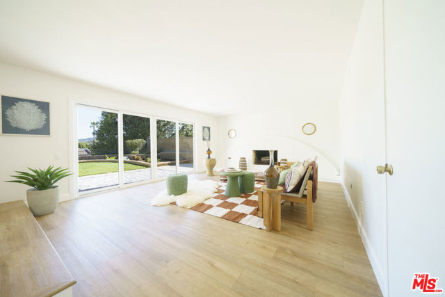 Panoramic Views & Seamless Indoor-Outdoor Living. Nestled in the heart of Valencia, this expanded Old Orchard II masterpiece blends Mid-Century Traditional charm with sophisticated modern updates. Designed for those who love light and scale, this home offers an unbeatable lifestyle and front-row seats to the California sunset. An open-concept living room featuring high cathedral-vaulted ceilings and a stylish statement fireplace. Upgraded wide-plank floors flow seamlessly throughout the entire home. The spacious kitchen features a central island, garden windows, and casual dining with views. A large family room with a fireplace ideal for supervised playtime or family movie nights. A convenient downstairs bedroom with sliding doors offers direct backyard access ideal for guests or a quiet home office. 4 separate access points to the "botanical garden" backyard create the perfect indoor-outdoor rhythm. Two West-facing bedrooms share an oversized front balcony, your private perch for stunning LA sunsets. Huge primary suite with cathedral ceilings, ensuite shower, and a massive walk-in closet perfect for a creative workspace or elite storage. Step directly onto the famous Valencia Paseo system. Walk or bike to top-rated schools, parks, and luxury shopping at the mall without ever crossing a major road. High-volume ceilings. High-end views. Welcome to your forever home.