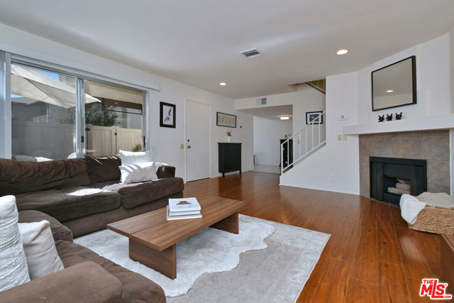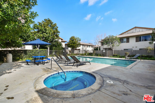 Tucked within a secure, gated community, this turnkey 3-bedroom, 2.5-bath townhome offers beautifully renovated living spaces with seamless indoor-outdoor living in the heart of Chatsworth. One of the few homes in the community with direct access from the attached two-car garage into the home, this residence combines convenience, privacy, and thoughtful design. Inside, a spacious open layout filled with natural light welcomes you into an expansive living area anchored by a cozy fireplace. Sliding doors open to a lush, private gated patio, creating an effortless indoor-outdoor connection ideal for everyday living and entertaining. The remodeled kitchen has been thoughtfully updated with brand-new cabinetry, countertops, and appliances, offering generous workspace for cooking and hosting. A pass-through window to the patio dining area enhances the indoor-outdoor flow, making it easy to serve meals or entertain guests outside. Just off the main living area, a dedicated in-home laundry room with a washer and dryer. Upstairs, all three bedrooms are generously sized and filled with peaceful treetop views. The primary suite serves as a relaxing retreat, complete with ample closet space and a beautifully updated en-suite bathroom. One of the secondary bedrooms offers excellent flexibility, making it perfect as a home office, guest room, or creative space suited to today's lifestyle needs. Step outside to your expansive fenced patio, a true outdoor oasis that wraps around the home. With space for dining, lounging, gardening, or entertaining, this private retreat offers endless possibilities for enjoying Southern California's year-round climate. Additional highlights include a spacious attached two-car garage with high ceilings and built-in storage, providing abundant room for vehicles, gear, and seasonal items. Residents enjoy the benefits of a well-maintained gated community featuring a sparkling pool, relaxing spa, and secure entry, while the HOA conveniently covers water and earthquake insurance. Move-in ready and thoughtfully designed, this exceptional townhome offers modern comfort, privacy, and convenience in a peaceful community setting.