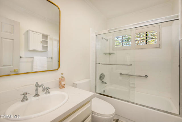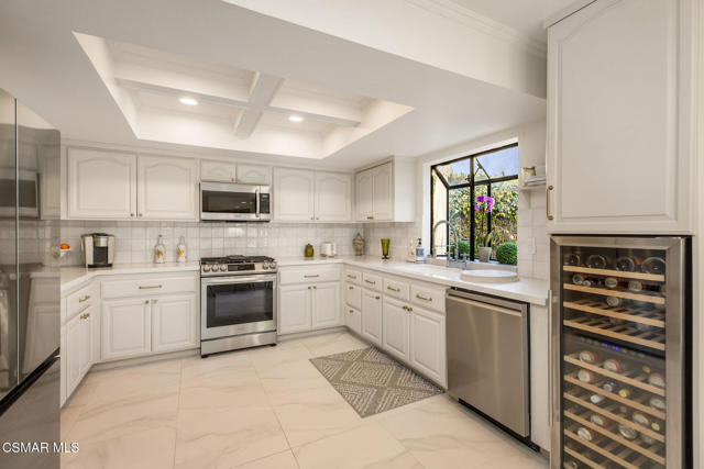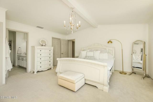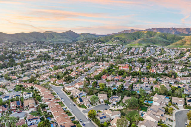 Tucked away on a tranquil cul-de-sac in the highly sought-after neighborhood of Oak View Ranch, this tastefully updated home combines designer touches with everyday comfort. Upon entering, you will immediately notice the soaring ceilings and abundance of natural light. The thoughtfully designed interior showcases warm wood flooring, refined finishes and stylish lighting that elevates each living space. The living room flows effortlessly into the dining area, creating an ideal setting for both intimate gatherings and larger entertaining occasions. The heart of the home features the kitchen and family room overlooking the backyard oasis allowing you to seamlessly enjoy indoor outdoor living. The updated chef's kitchen offers newer stainless-steel appliances, quartz countertops and a kitchen island perfect for hosting family and friends. Upstairs, you will find all four bedrooms, three of which share an updated hall bathroom. The primary suite features an oversized walk-in closet with two additional closets, a spacious en-suite bathroom and a charming view. In the backyard, the covered patio provides the perfect setting for alfresco dining, overlooking a sparkling pool, spa and built-in BBQ framed by mature greenery for ultimate relaxation and privacy. Upgrades since 2024 include a new roof, plantation shutters and a drip irrigation system. Located within the award-winning Las Virgenes Unified School District and in close proximity to fine dining, shopping and entertainment, this exceptional property offers the balance of style, relaxation and the Southern California lifestyle.