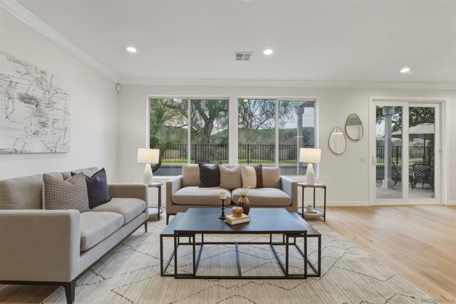 Rare opportunity to own a fully renovated 5-bedroom golf course home with unobstructed fairway and mountain views in the highly desirable Twin Oaks Valley community. Enjoy scenic views from nearly every main living space, including the primary suite, family room, living room, dining area, and gourmet kitchen—creating a seamless indoor-outdoor living experience. Thoughtfully redesigned with modern finishes, the home features white cabinetry, natural stone countertops, GE Profile appliances, new engineered wood flooring, designer tile, remodeled bathrooms, and contemporary lighting throughout. The fifth bedroom shown in public records is currently configured as a second-floor loft, offering flexible space for a home office, playroom, or additional living area, and can easily be converted back if desired. Located in one of San Marcos’ most desirable golf course neighborhoods with low HOA that includes access to a community pool and playground, this move-in-ready home offers peaceful golf course living while remaining conveniently close to schools, shopping, dining, and major freeways. Thoughtfully redesigned with modern finishes, the home features white cabinetry, natural stone countertops, GE Profile appliances, new engineered wood flooring, designer tile, remodeled bathrooms, and contemporary lighting throughout.