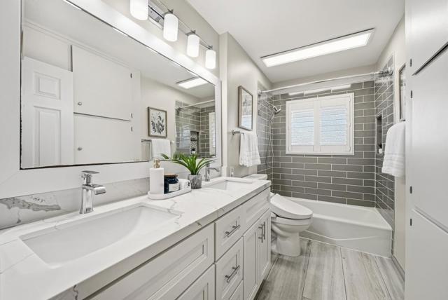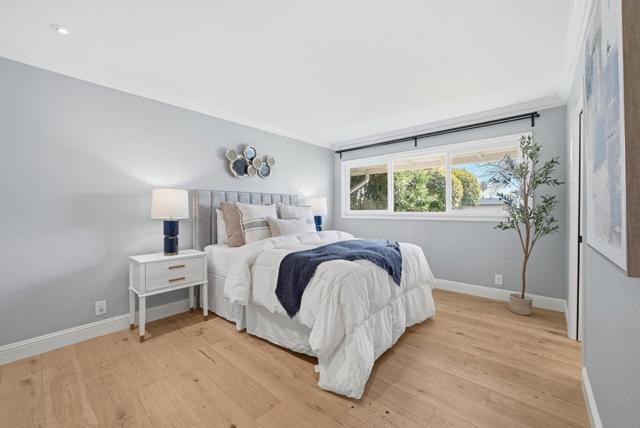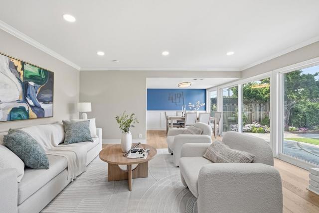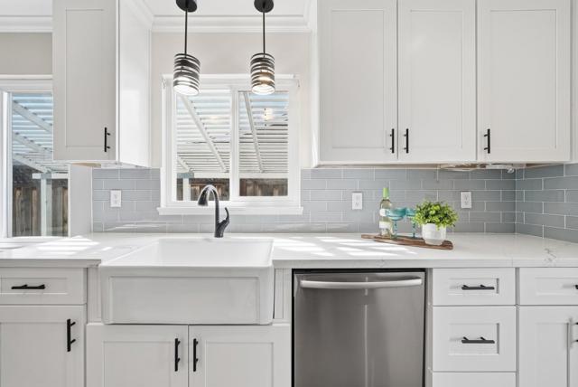 Welcome to this beautiful 4-bedroom, 2-bath single-family home in Santa Clara, on a lot over 8,000 sqft and served by sought-after Cupertino schools. Upon entry, a cozy living room sits to the left and flows into the kitchen with a breakfast nook. The gourmet kitchen features quartz countertops, stainless steel appliances, and white cabinetry, and connects to a spacious family room with a fireplace and skylight, along with a dining area highlighted by a stylish accent wall. Large sliding doors open to the generous backyard, creating seamless indoor-outdoor living. A hallway leads to the bedrooms and bathrooms. The primary suite offers a spacious bedroom, and its en-suite bathroom features a lighted mirror, floating vanity, and stall shower. Three additional bedrooms provide flexibility for family or guests, with one featuring a sliding door to the backyard. The hallway bathroom includes a double vanity with a quartz countertop and a shower over tub. Additional features include an attached two-car garage with washer and dryer. Conveniently located near restaurants, grocery stores, and shopping, about 10 min to Valley Fair and 5 min to Apple Park, with easy access to Hwy 280 and Lawrence Expressway for a short commute to major tech companies. Do not miss this great opportunity!