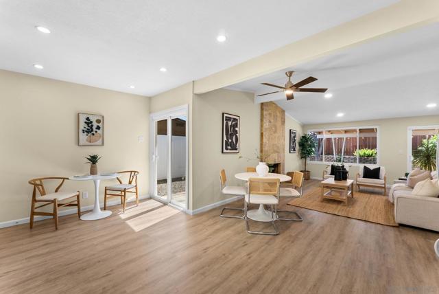 This single-story home features a comfortable open layout that creates a natural flow between the living spaces. The interior includes an updated kitchen with newer appliances, updated bathrooms, recessed lighting, dual pane windows, fresh exterior paint, and a cozy fireplace that anchors the main living space. The low-maintenance yard provides a welcoming space to relax or gather with family and friends. Located in the heart of Serra Mesa, a central San Diego neighborhood connecting you to Mission Valley, major medical centers, San Diego International Airport, the San Diego Zoo, and the surrounding freeways.