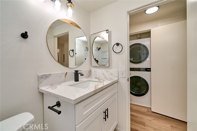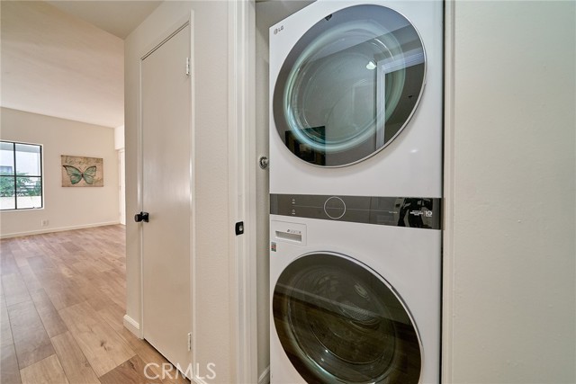 Beautifully remodeled 2-bedroom, 2-bath residence offering the ideal beach lifestyle. This bright and inviting home features a well-designed layout with spacious living areas, abundant natural light, and a comfortable open-concept feel. The spacious living room flows into the upgraded kitchen, featuring new quartz countertops, stainless steel appliances, and a new sink and faucet. Both bathrooms have been tastefully remodeled, and the home includes fresh interior paint and natural wood-design laminate flooring throughout. The hallway laundry area conveniently includes a newer stackable washer and dryer, neatly tucked away. Down the hall, the spacious en-suite primary bedroom offers dual wall closets, vanity cabinets, and a sliding glass door that opens to a private balcony. The second bedroom is equally spacious, featuring similar closet space and a vanity area with convenient access to the hallway bathroom. The unit includes 2 dedicated parking spaces with overhead storage in the subterranean garage. The secured complex offers modern cell-app and FOB access for entry to the parking areas, mailroom, and building. Residents enjoy low HOA dues and amenities including a community recreation room, a well-equipped gym, bike storage, and an open green outdoor space for entertaining. Ideally located just down the street from a community center and park, and only minutes from freeway access, downtown, and the beach. Enjoy nearby coastal amenities including restaurants, shops, bike trails, picnic areas, kiting, a skate park, and an on-sand restaurant.
