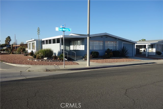 Welcome Home! This Corner lot 2 bedroom 2 bath home features a formal living and dining room. Open kitchen with a breakfast bar and open to the family room. The family room features a built in hutch desk area. Just off the family room you will find the fully enclosed bonus room area perfect for hobbies, exercise room or extra storage. The guest bedroom is a good size with an adjoining bathroom that features a walk in shower. The primary bedroom features built in dresser, mirrored closet and has the adjoining primary bathroom featuring dual sinks, sunken tub and a walk in shower. The laundry room is located indoors with cabinets and a functional sink. The washer and dryer are included. Step out the side door into the enclosed garage. Possible parking for 2 cars and 2 sheds are at the end. Outside you will find nicely landscaped with rock and just the right amount of shrubbery. The back hosts some beautiful cactus. The front porch features a built in ramp. All located in Sierra Dawn Estates a 55+ Community that features 4 clubhouses , 5 pools, Jacuzzis, exercise room, shuffle board horseshoe, and so many other clubs and activities to join in on the fun. Basic cable is included with the monthly HOA Fee and there is parking for your RV. This home is directly across the street from one of the main clubhouses. Oh and did I mention...YOU own the land - No Space Rent! Put this one on your list to see today
