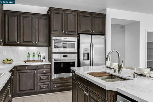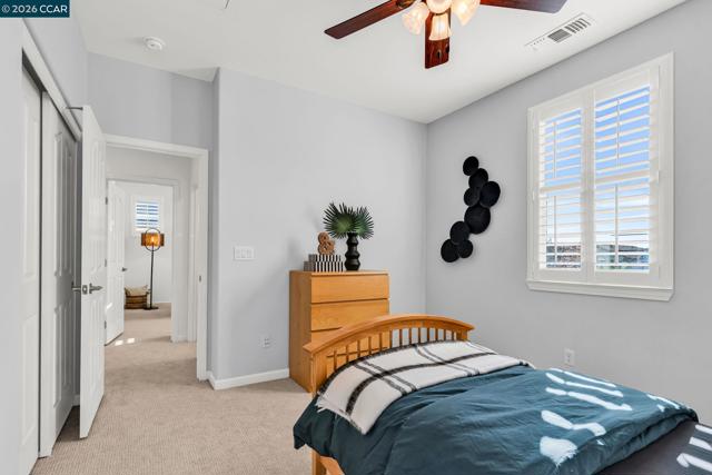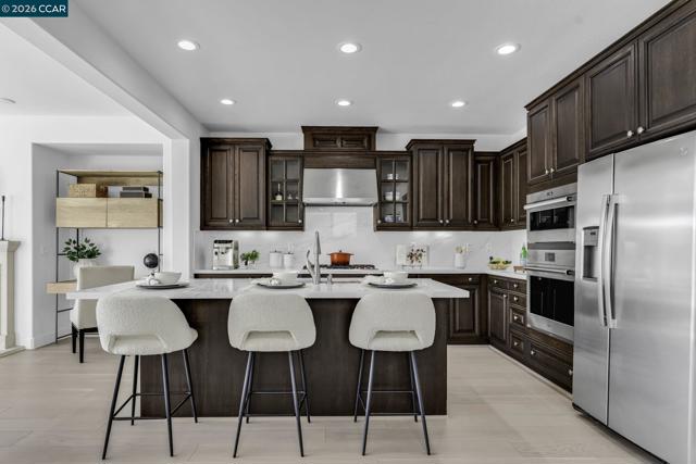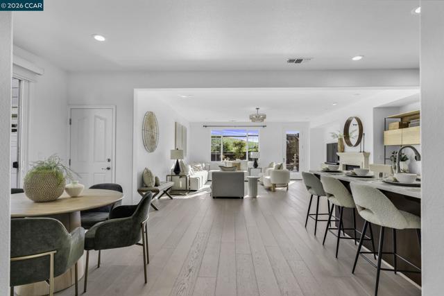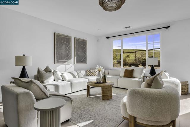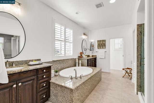 Beautiful Windemere home by Lennar located on a quiet court backing to open space with sweeping hill views, just around the corner from Ramona Park and close to top-rated schools. Thoughtfully designed floor plan features formal living and dining rooms with European wide-plank white oak floors and plantation shutters, plus a main-level bedroom or private office with full bath. The chef’s kitchen offers a large island with bar seating, new quartz countertops, stainless appliances including a Wolf gas cooktop and built-in oven/convection microwave, a generous walk-in pantry & breakfast nook opening to the backyard. The kitchen flows into a spacious family room with gas fireplace, media niche, and picturesque views. Upstairs - primary suite includes double-door entry, built-in cabinetry, dual vanities, soaking tub, glass-enclosed shower, & two large walk-in closets. A large loft, built-in two-desk workstation, three additional bedrooms & laundry room complete the upper level. The private backyard offers a stone patio, fountain, and fruit trees (peach, apple, and orange). Recent upgrades: fresh interior paint, updated fixtures, new carpet, Hunter Douglas window treatments, wrought-iron bannister, water filtration system & owned solar. Open House: Thur 11:30-1:30 | Fri 5-7 pm |