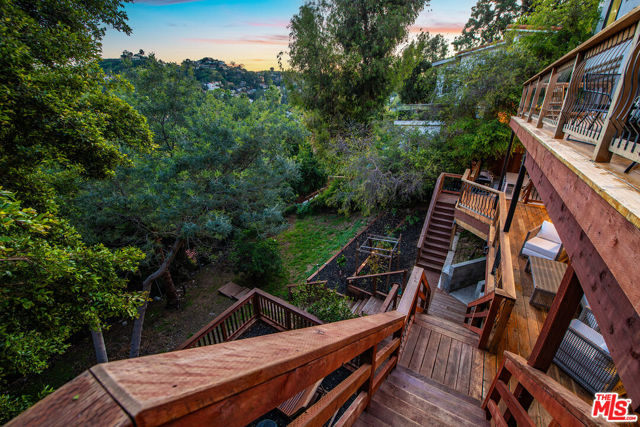 Situated on one of the most picturesque streets in desirable Lake Hollywood Knolls, 3323 N Knoll Drive is a timeless 1930 Spanish residence offering 4 bedrooms and 4.5 bathrooms across approximately 2,530 square feet on a 6,419 square foot lot. Single Family Residence typed as Triplex. Showcasing classic architectural character with vaulted wood-beamed ceilings, rich hardwood floors, multiple fireplaces, and expansive decks on every level, the home embodies true California indoor-outdoor living. South-facing and filled with natural light throughout the day, the thoughtfully designed multi-level layout provides exceptional privacy, flexible living spaces, and private entries idealfor extended family, guests, or income potential. The entertainer's living and dining areas flow seamlessly to outdoor terraces with hillside views, perfect for al fresco dining and sunset gatherings. The spacious primary suite features soaring ceilings, a fireplace, and tranquil woodland vistas, while additional bedrooms are generously sized and well- appointed. A four-tiered terraced backyard offers abundant usable outdoor space for recreation, gardening, or future customization. This rare offering blends historic charm, versatility, and an exceptional Hollywood Hills setting.