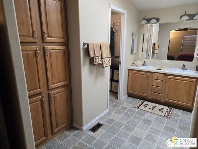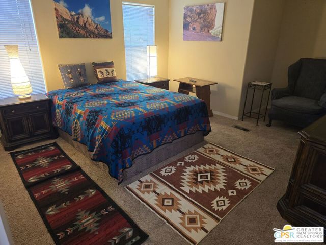 Welcome to your next home in the gated, fee simple (you own the land!) Active Adult (55+) community of El Dorado. Located in the desirable south Palm Springs location minutes from downtown PS, the PS Intl Airport and next door to a retail strip shopping center anchored by Trader Joe's/Target/Starbuck's. Not to mention also near the CV Rep and Mary Pickford Theatre. This 2005 manufactured 2bed,2bath + Den almost 1600 sq ft home features 2x6 walls (high R factor insulation), contemporary floor plan, inside room with updated W/D units, updated kitchen with stainless steel appliances, newer laminate wood flooring plus carpeting in both bedrooms and den. The den can easily be converted to a 3rd bedroom with notch in place for closet conversion. Primary bathroom features double vanity sink, walk-in shower plus the walk in closet for the large primary bedroom. Guest bathroom features tub/shower combo. Outside the home is vinyl fencing providing a private side patio plus landscaped yard. TERRIFIC mountain views are afforded from the front porch sitting area. This home has 433A certification which provides ease in financing if need be. Located in back end of park it is in short vicinity of the back pool and tennis/pickleball courts, plus ease of easy in/out from back gate. Low HOA includes water and trash. This home is being offered furnished. It will not last long! so Come See/Make Offer!