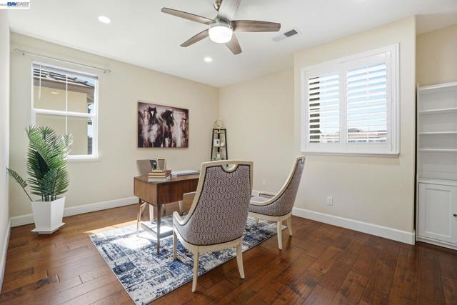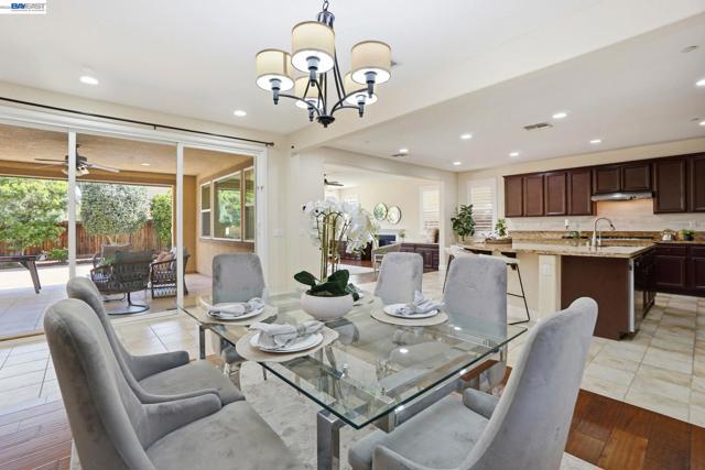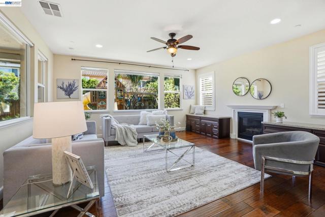 Beautiful upgraded house with great open floor plan. Bright and spacious, gorgeous huge island bar in the kitchen that opens into the family room. Engineered hardwood in all bedrooms/loft/master closet/dining/living room. Plantation shutters on most of the windows. Custom cabinet with quartz counter top in living room. Built in intercom upstairs/downstairs, and Solar system (need to transfer the title). Stunning large California room with cozy fireplace terraced lounge areas and motorized screens. Many fruit trees and small vegetable farming boxes in the back yard. Built in children's playground. Located in a charming desirable neighborhood right in front of the Park, Trails, Schools, HWY 4, shopping and dining.