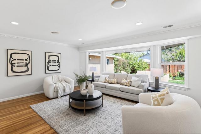 Exquisite home with an impressive, meticulously curated garden, perfectly positioned in a peaceful, highly sought-after neighborhood near the Cupertino/Los Altos borders. Located within the Top-Rated Cupertino school district, just moments from the vibrant Serra Park and a plethora of convenient shopping centers. Inside, red oak hardwood floors lead into sun-filled floorplan with vast natural light streaming through dual-pane windows and skylights. Designed for year-round comfort with heat/AC and not one, but two cozy fireplaces. Beyond the formal dining room lies a gourmet kitchen showcasing high-end stainless steel appliances, granite countertops/island with one of two sinks, bay window, aged cherry wood cabinets and pantry. All bedrooms are comfortably sized with their own closets, while the primary suite offers a walk-in closet, fireplace and spa-like bathroom with jetted tub, two-person stall shower and towel closet. Additional highlights include a two-car garage and sunny backyard with deck, sheds and the true centerpiece, a breathtaking 25-year-old garden featuring dozens of plant and flower varieties. Ideally located near top tech campuses including Apple and Meta, with easy access to highways 85, 280 and Caltrain. Do not miss your chance to own this gem. It will go FAST!