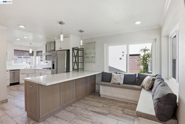 Beautifully updated home in the desirable Bay-O-Vista neighborhood in San Leandro, 1233 Benedict's bright and airy floor plan offers Bay views and all living and bedroom spaces on one level. The home features an updated kitchen with quartz countertops, built in gas stove and appliances, renovated bathrooms, dual pane windows, and a finished basement ideal for a home office, studio, or gym, with additional ample storage. French doors off of the dining room lead to a covered patio, perfect for summer BBQs and indoor/outdoor entertaining while enjoying our beautiful Bay Area weather. The oversized backyard is ready for your creativity and imagination to flow. Located just minutes from freeways, restaurants, shopping, and Lake Chabot, this home offers easy access to Oakland and SF.