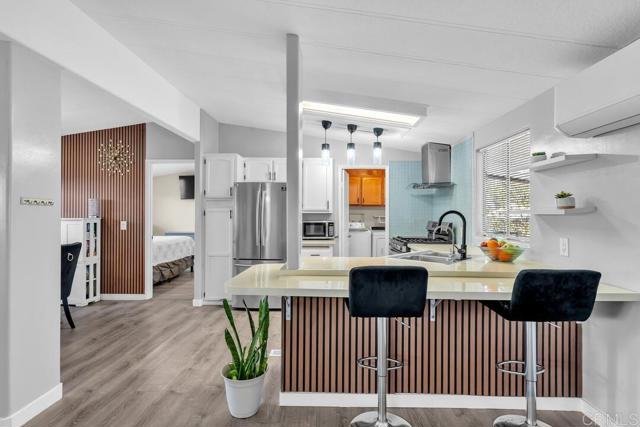 ALL AGE PARK. Well maintained 3-bedroom, 2-bath manufactured home located in a welcoming all-ages community. This home offers a comfortable layout with great flow between living spaces, creating a generous, inviting space for everyday living. The private backyard provides a “sun-trap” setting, perfect for relaxing, gardening, or enjoying outdoor time. Additional features include a lockable storage shed and covered carport parking. The community has a pool, a park and a club house. A wonderful opportunity to own in a friendly community close to everyday amenities, freeways and shopping.