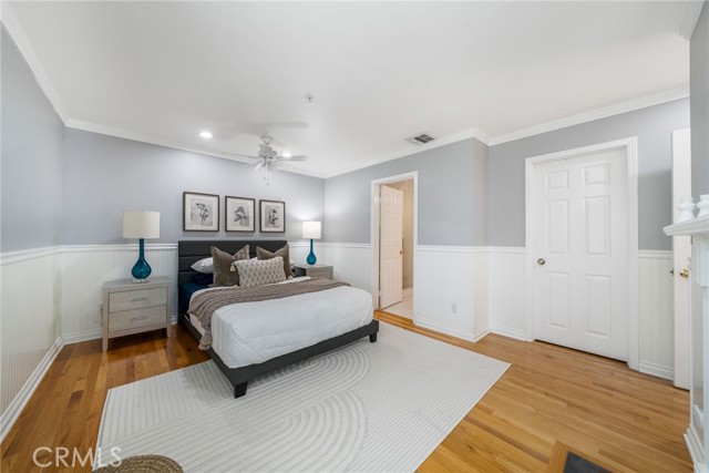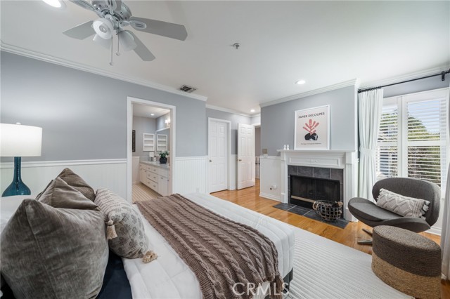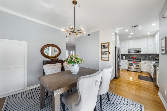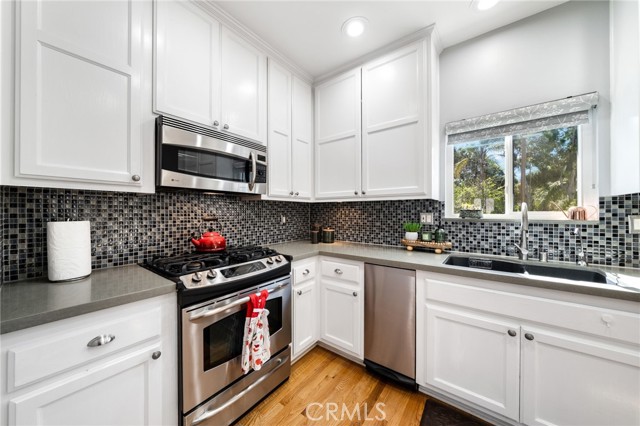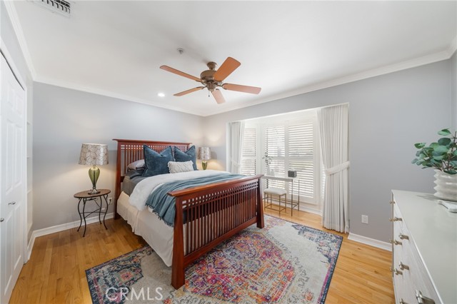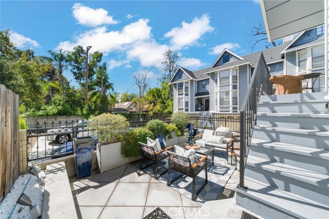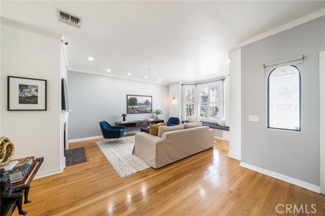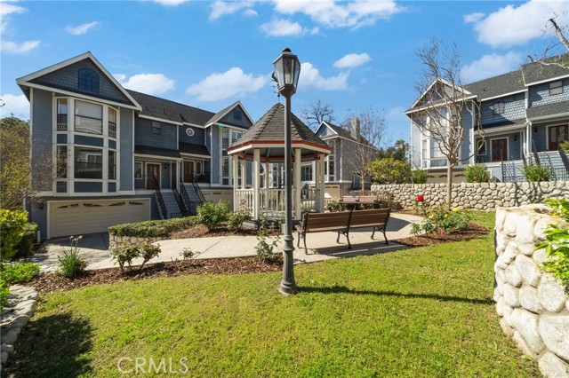 Rare end-unit townhome with mountain views and a private backyard retreat in the heart of Sierra Madre, just moments from downtown shops, restaurants, and the Sierra Madre Public Library. This light-filled Victorian-style residence offers beautiful hardwood floors throughout, timeless architectural charm, and an inviting indoor-outdoor lifestyle. The welcoming main level features a spacious living room with fireplace, plantation shutters, and abundant natural light. The inviting dining area showcases picturesque bay windows and custom built-in cabinetry, creating an ideal space for entertaining. The kitchen offers tall cabinetry, generous pantry storage, and designer countertops. A sliding glass door opens to a private deck that leads down to a fully enclosed backyard—perfect for relaxing or enjoying Southern California’s indoor-outdoor living. Upstairs, the expansive primary suite features its own fireplace, walk-in closet, and tranquil treetop views. Both bathrooms have been beautifully renovated with quartz countertops and elegant tile finishes. A spacious secondary bedroom enjoys mountain views and convenient access to the updated guest bath. The ground level includes an attached two-car garage and approximately 250 sq ft of bonus space currently configured with built-in storage and laundry, offering flexibility for a home office, gym, hobby room, or creative studio. Morgan Court is an intimate and well-maintained community of just 16 townhomes set on over an acre of landscaped grounds, featuring green space, a charming gazebo, and guest parking. Ideally located in one of Sierra Madre’s most desirable neighborhoods, this exceptional end-unit offers privacy, natural light, and the perfect blend of tranquility and convenience.