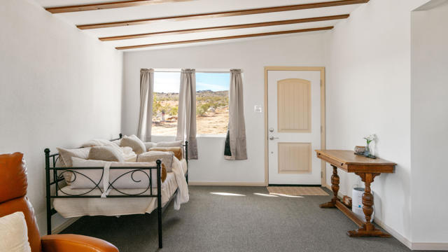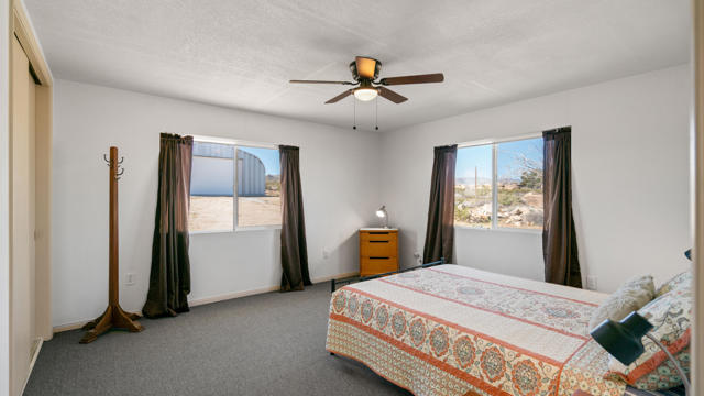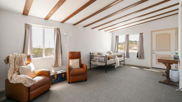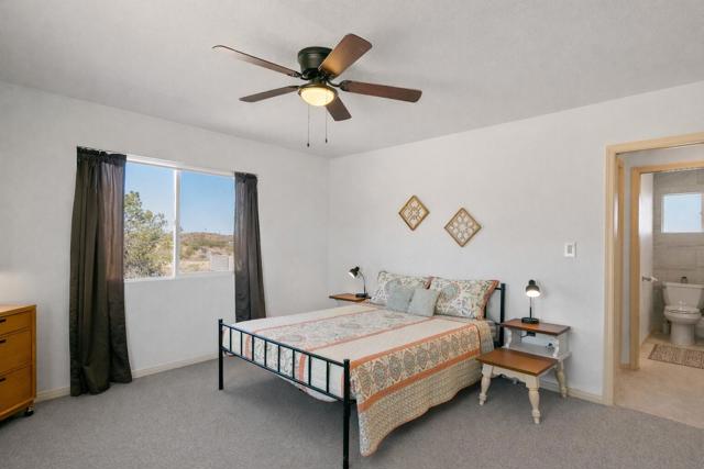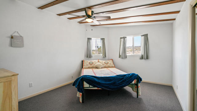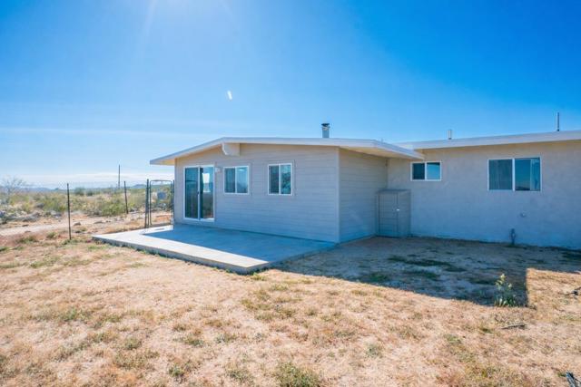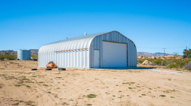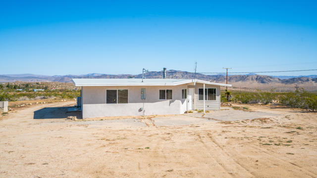 Seeking peace, solitude, and breathtaking desert views? Or is it Adventure, privacy, and the wide open desert that meet your fancy? Whichever it is, this unique 5-acre desert retreat is perfectly suited for off-road enthusiasts, outdoor adventurers, or anyone seeking wide-open space and tranquility, this beautifully remodeled 2-bedroom, 1-bath home offers the ideal balance of comfort and functionality.The interior has been thoughtfully updated throughout and features beautiful wood beamed ceilings, two bedrooms, a full bathroom with dual vanity, and a spacious mudroom/laundry room with utility sink. The kitchen has been refreshed with new countertops, sink, faucet, dishwasher, refrigerator, recessed lighting, and updated fixtures, while tile flooring, new carpet, upgraded windows, ceiling fans, fresh drywall, and interior paint give the home a clean, modern feel.For those who need space for equipment, vehicles, or toys, the property truly shines. A massive 30' x 40' steel garage/workshop with a 12-14 ft roll-up door and reinforced concrete slab provides ample room for multiple vehicles, RVs, off-road rigs, trailers, or heavy equipment. With easy access to surrounding desert terrain, this is an incredible setup for off-road recreation, including nearby King of the Hammers and other desert events. The spacious garage offers excellent potential for conversion into a large Additional Dwelling Unit (ADU), providing opportunities for guest accommodations, rental income, or extended living space if that suites your fancy.Additional improvements include new exterior siding and paint, security screen doors, porch lighting with sensors, upgraded windows, swamp cooler, industrial 45-gallon water heater with new housing, and improved water lines connecting the 5,000-gallon above-ground water tank to the pump house.With five usable acres, sweeping desert views, and a large garage built for adventure, this property is ideal as a private getaway, vacation home, or short-term rental for desert enthusiasts looking to explore everything the High Desert has to offer.Buyer to verify all information to their satisfaction including, but not limited to, square footage, lot size, zoning, permits, utilities, water source, property boundaries, condition of improvements, and intended use. Listing agent and seller make no guarantees or warranties, expressed or implied.