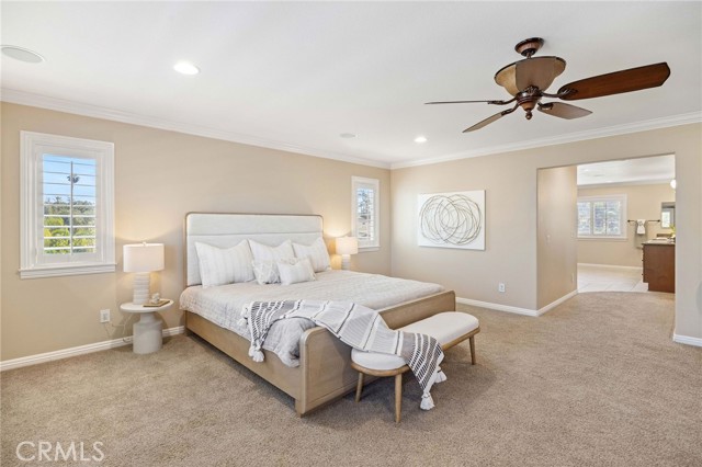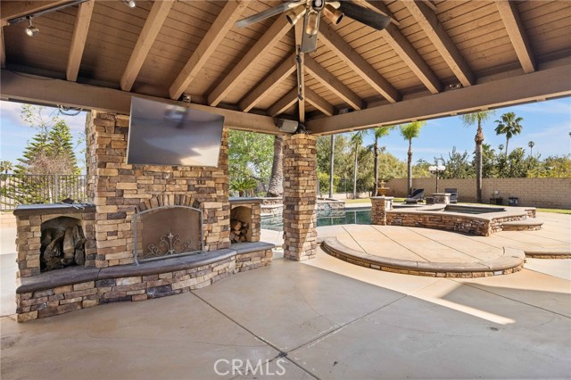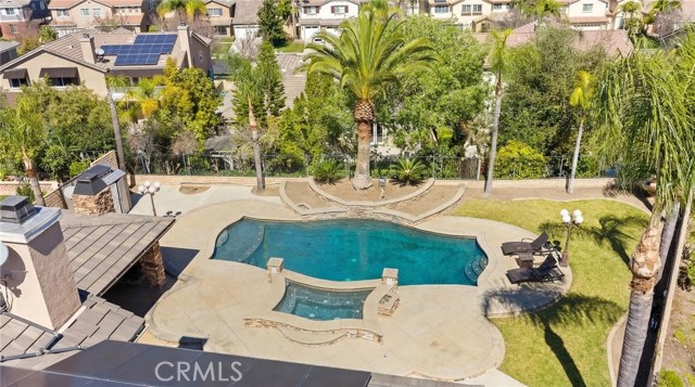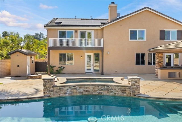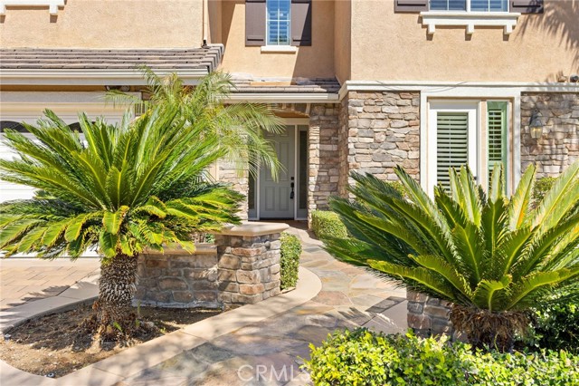 Located within the gated Fieldstone community, this expansive residence offers over 4,000 square feet of thoughtfully designed living space with 6 bedrooms and 6 bathrooms, combining refined interiors with resort-inspired outdoor amenities. Positioned on an elevated corner lot, the home enjoys added privacy along with beautiful mountain views on clear days. Designed for both everyday comfort and elevated entertaining, this home creates a seamless connection between indoor living and the outdoor entertaining spaces. The backyard is a true highlight of the property, designed as a private retreat for hosting and relaxation. A sparkling solar-heated pool anchors the space, complemented by a fully equipped outdoor cabana-style kitchen with built-in BBQ, bar seating, fire pit, and outdoor fireplace. No less than 16 palm trees surround the property, with a magnificent Sago as its centerpiece, creating resort-like vibes all year round. An outdoor bathroom adds convenience for guests enjoying the pool and entertaining areas. The flexible floor plan includes a private downstairs suite with its own entrance and patio, offering an ideal setup for extended family, guests, or a private office retreat. The first floor great room combines a fully equiped kitchen with a large living and dining space, with easy access to your incredible yard. Upstairs, the primary suite serves as a spacious sanctuary with an adjoining private balcony, featuring a large en-suite bath with a walk-in shower, soaking tub, and walk-in closet. Additional features include PAID-OFF SOLAR PANELS, upstairs laundry, a three-car garage, dual condenser units, and a tankless water heater, providing both efficiency and modern convenience. Combining generous living spaces, thoughtful upgrades, and exceptional outdoor amenities, this home offers a rare opportunity to enjoy privacy, comfort, and resort-style living within one of the area’s most desirable gated neighborhoods.
