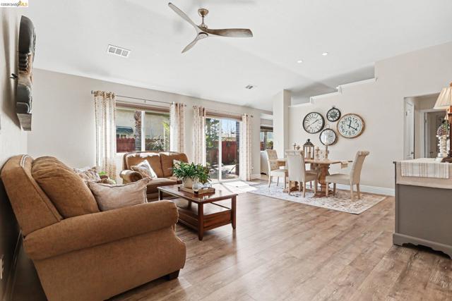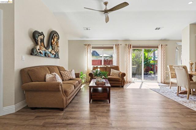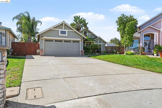 Welcome to this beautifully updated single-story home located on a quiet cul-de-sac in the desirable Vintage Parkway neighborhood. This light and bright 3-bedroom, 2-bath home offers 1,492 sq ft of living space on an expansive 8,255 sq ft lot and includes a spacious 2-car garage. Extensively updated in 2020, the home features designer bathrooms, new interior doors, trim and baseboards, fresh paint, new windows, 2” blinds, and new flooring throughout most of the home. The kitchen includes upgraded cabinetry, granite countertops, tile flooring, and updated appliances. The inviting family room features a cozy fireplace. The primary suite offers a sliding glass door to the backyard and a private pergola with a fan. The park-like backyard showcases mature landscaping and a tranquil koi pond, while the side yard includes a workshop. The 2-car garage also features built-in shelving for additional storage. Major upgrades include a newer roof (2017) and HVAC system (2018). Conveniently located within walking distance to downtown Oakley, Big Break Regional Trails, and Vintage Elementary School, with easy freeway access for commuting.