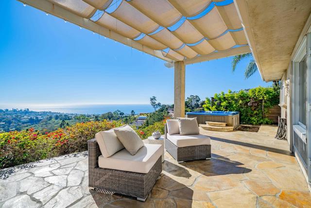 Views forever! 7240 Caminito Cruzada is a one of a kind 3-bedroom ranch. Located in the exclusive Summit community nestled in the hills of La Jolla near the tip top of Mount Soledad. This home looks over Windansea beach all the way to the islands off Mexico...over the Coronado bridge to the twinkling lights of downtown San Diego. Unwind and Breath. Cruzada is a one-story with views through all the western facing windows. The master suite looks west and beyond with French doors that open to the patio and outdoor spa. The home is open and filled with natural light. Great for entertaining with an open kitchen concept to the living room, dining room, and family room. French doors open to the flagstone patio, outdoor cozy fireplace, and that view, you will never want to leave! The southern side has a lovely garden and a raised flower bed that is viewable from the dining room. Nightly sunsets paint the sky a different way each night. This home is in a neighborhood known for its serene environment and proximity to premier amenities, racquet sports, swimming pools, and a private gym. Just a short drive to downtown San Diego. Great schools, fantastic beaches, and superb outdoor living. Just minutes from downtown La Jolla, with easy access to upscale dining, boutique shopping, the Museum of Contemporary Art. A coveted address with views of the ocean, for discerning homebuyers seeking privacy without sacrificing convenience.