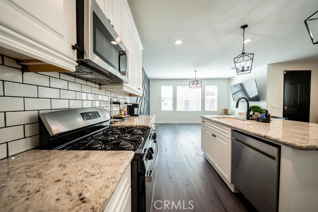 Welcome to 1928 Ray Abril Jr Ln, a beautifully upgraded 2021-built home located in the desirable Wildrose Community of Colton. This 4 bedroom, 3 bathroom home offers approximately 1,949 square feet of thoughtfully designed living space with a functional and versatile floor plan. The open-concept main level features luxury vinyl plank flooring, recessed lighting, custom accent walls, and designer light fixtures throughout. The spacious Great Room seamlessly connects the living, dining, and kitchen areas, creating an ideal setting for everyday living and entertaining. The kitchen showcases white cabinetry, beautiful countertops, subway tile backsplash, stainless steel appliances, and a large center island with bar seating. The dining area includes a built-in credenza. A highly desirable downstairs bedroom and full bathroom with walk-in shower offer flexibility for guests or multi-generational living. Upstairs features a versatile loft space, perfect for a home office, media room, or play area. The primary suite includes a walk-in closet with built-in organizers and an ensuite bathroom with dual sink vanity, quartz counters, soaking tub and separate shower. Two additional bedrooms, a full hall bathroom, and an upstairs laundry room with additional storage complete the second level. Additional highlights include an attached 2-car garage, tankless water heater, and a low-maintenance concrete backyard ready for outdoor enjoyment. The Wildrose Community offers a low HOA with amenities including a swimming pool, BBQ area, playground, greenbelts and dog park. Conveniently located near the 210 and 10 freeways, shopping, dining, and medical facilities including Arrowhead Regional Medical Center, Loma Linda University Medical Center and Kaiser Fontana. Modern construction, flexible layout, and a prime commuter-friendly location make this home a must-see.