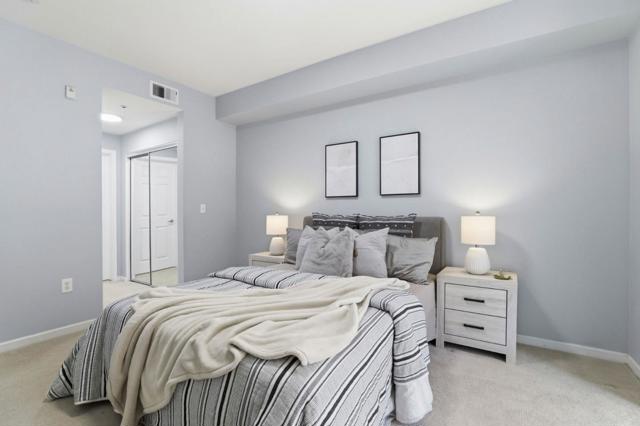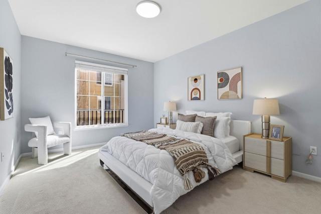 Spacious and move-in-ready, this private second-floor interior 2-bedroom, 2-bath condo in San Joses gated Sonora community offers an open, light-filled layout, a kitchen with granite countertops, stainless steel appliances, soft-close cabinetry, and a private balcony with storage. The primary suite features a walk-in closet and en suite bath, while the well-sized second bedroom is served by a full hall bath. Recent updates include newer appliances, toilets, lighting, walk-in closet organizers, and fresh touch-up paint. Additional highlights include central A/C and heating, in-unit laundry, dual-pane windows, and two assigned parking spaces in a secure gated garage. Residents enjoy resort-style amenities including a fitness center, pool, spa, clubhouse, game room, business center, BBQ area, guest suite, and landscaped walkways with fountains, while the HOA covers water and garbage. Ideally located just minutes from downtown San Jose, SJC, light rail, shopping, dining, and major tech employers such as TikTok, NVIDIA, and Google, with easy access to Highways 87, 101, and 880.