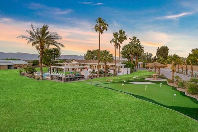 Welcome to a rare 5-acre private ranch estate in the heart of Indio, tucked behind the exclusive gates of Trilogy at Polo Club and just blocks from the world-famous Coachella and Stagecoach Music Festivals. This extraordinary short-term rental retreat offers the perfect blend of privacy, scale, and resort-style entertainment in one of the most desirable STR locations in the Coachella Valley. �Airbnb +1Set across a sprawling five-acre compound, this unique property features three separate homes with seven bedrooms and six bathrooms, creating an ideal layout for large groups, retreats, or festival weekends. Guests enjoy the rare luxury of expansive open space while remaining minutes from the polo fields, world-class golf, restaurants, and entertainment. �AirbnbDesigned for unforgettable desert gatherings, the estate centers around a massive resort-style pool and spa, surrounded by a chef's outdoor kitchen, pizza oven, fire features, and shaded lounge areas. The grounds are an entertainer's dream with a putting green, bocce ball, volleyball, shuffleboard, arcade games, and multiple outdoor gathering spaces under the desert sky. �AirbnbAs the sun sets over the Santa Rosa Mountains, guests can enjoy epic desert sunsets, string-lit evenings, and the relaxed luxury of a private ranch compound--all within walking distance of the biggest music festivals in the world. With its unmatched acreage, entertainment amenities, and prime location near the Empire Polo Club, this property represents one of the most unique and profitable short-term rental opportunities in Indio.Whether hosting a festival weekend, corporate retreat, or luxury desert getaway, this one-of-a-kind estate delivers space, privacy, and unforgettable experiences in the heart of the Coachella Valley.