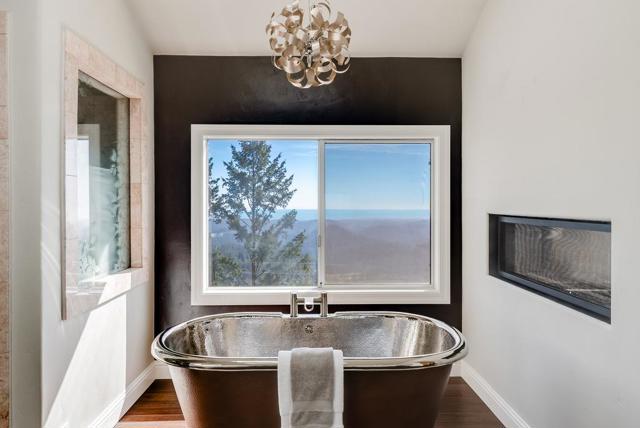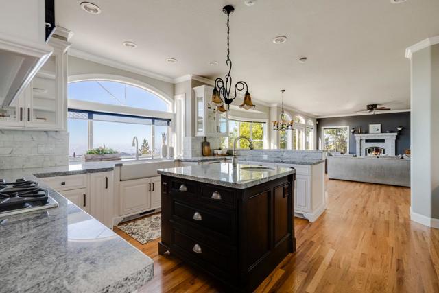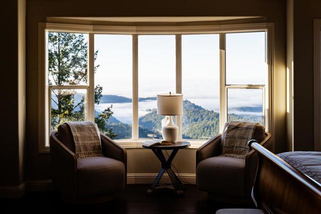 Let's just get this out of the way, the view here is ridiculous. The kind that interrupts conversations. Someones halfway through a sentence, glances out the window & suddenly the whole room goes quiet for a second. Some days its crystal clear across the valley. Other days clouds drift through the mountains. At night, the lights below start to sparkle. The main living spaces were clearly designed around it. The kitchen & family room sit in the center of the home & naturally become the gathering spot. Someones cooking, someones leaning on the counter, & before long everyone has drifted toward the windows again. Outside, two large connected decks make entertaining easy & the hot tub tends to become the evening destination once the valley lights come on. A garden path leads past raised beds to a small vineyard, giving the property its own little slice of Napa, just with ocean views. The primary suite is grand & positioned perfectly toward the valley & ocean beyond, complete with a see-through fireplace & a copper soaking tub that tends to turn five minutes into an hour. There's also an office with the same outlook, which means you'll never need a generic Zoom background again. Space, privacy, fresh air & a setting that somehow manages to steal the show every single time.
