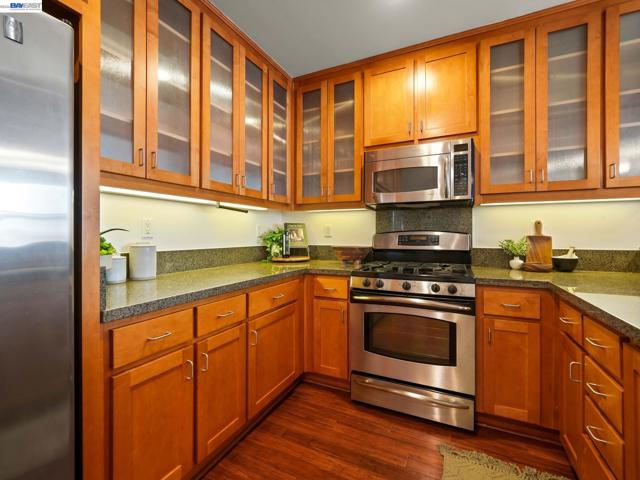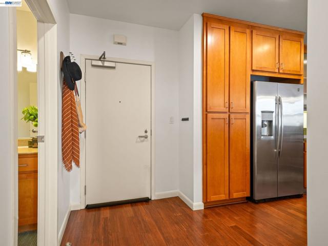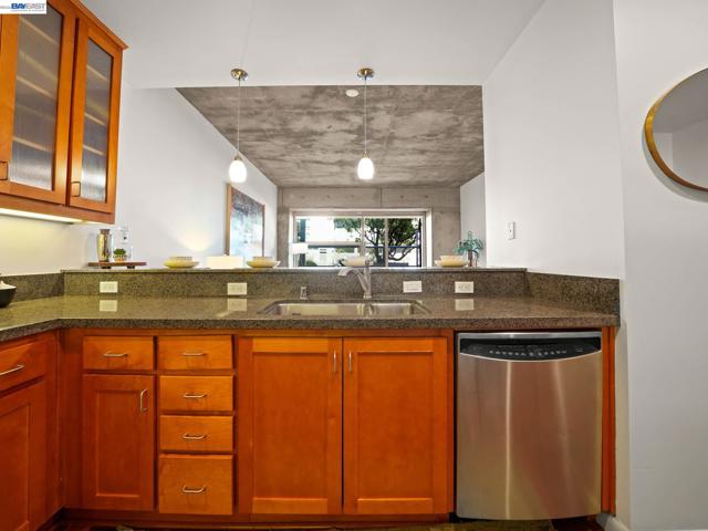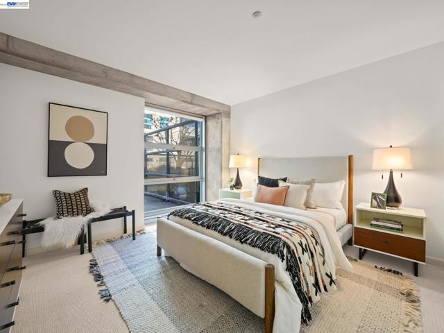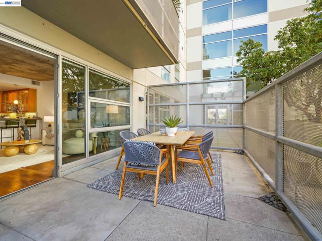 Rare Jack London condo with an enormous private patio. 783 sq. ft. of living space plus a huge private patio make this one-bedroom at 428 Alice a true standout. Located in a desirable concrete-and-steel building, the home offers a spacious layout rarely found in downtown condos and a perfect mix of comfort, convenience, and city living. The generous bedroom features a custom walk-in closet and a large window with a convenient battery-operated shade. The well-equipped kitchen offers abundant cabinetry, a gas stove, and dishwasher, opening to the living area and flowing directly out to the expansive deeded secure patio—an exceptional extension of the living space and perfect for outdoor dining, relaxing, or entertaining.In the hallway you’ll find the in-unit washer/dryer, utility closet, and coat closet. The home also includes central heat and A/C, access to the building gym conveniently located next door, and a rare bonus: a large storage cage on the same floor as the deeded one-car covered parking.Step outside and enjoy great dining including Farmhouse Kitchen Thai Cuisine and Cafe Da Funk, along with many other neighborhood favorites. Commuting is easy via nearby 12th Street or Lake Merritt BART, or the ferry to San Francisco.