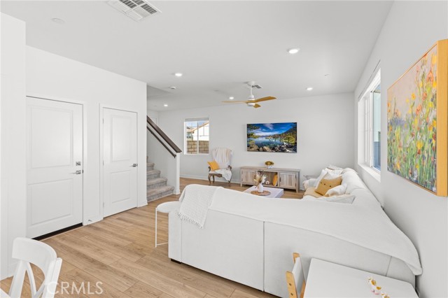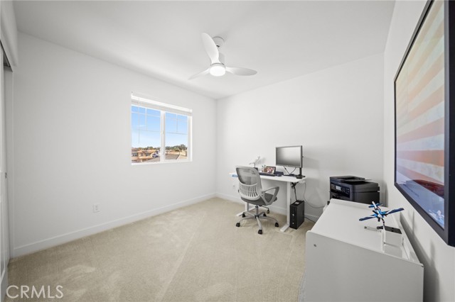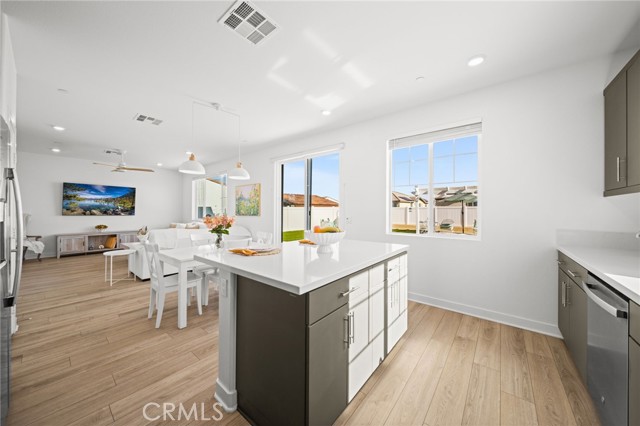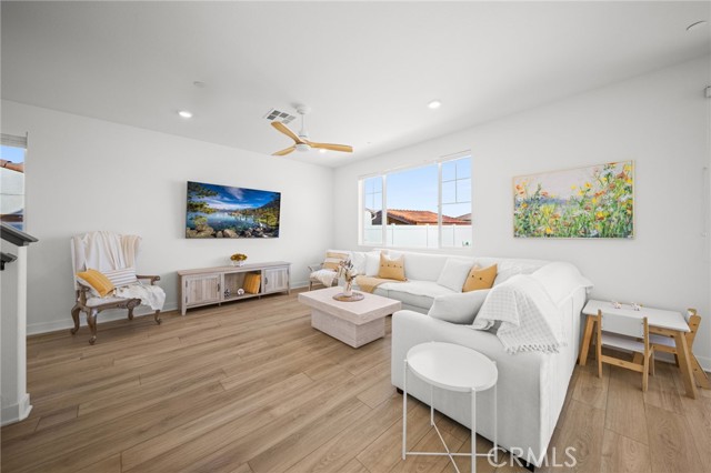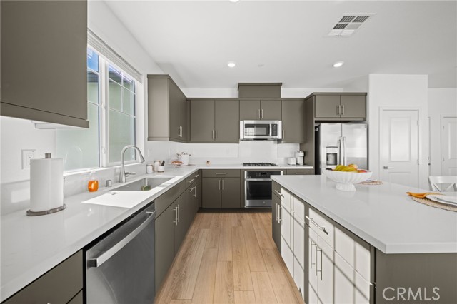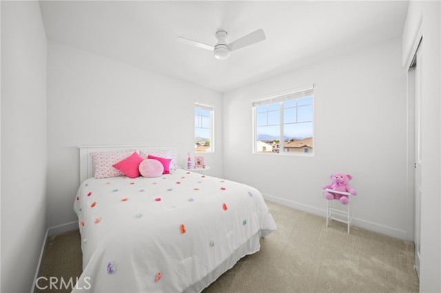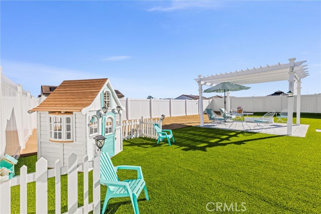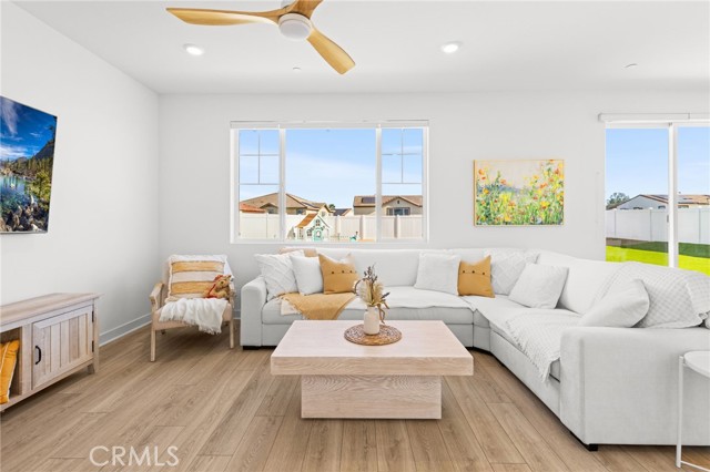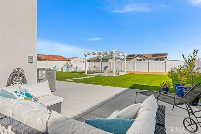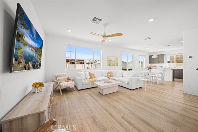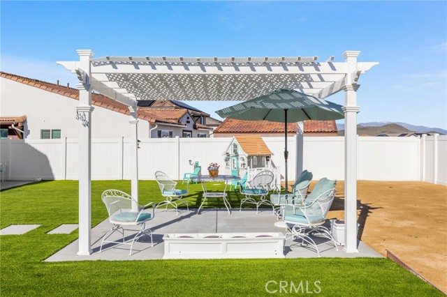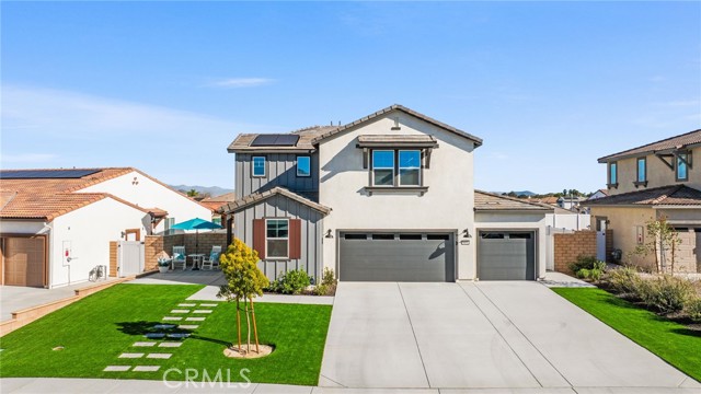Welcome to this Desirable Quartz Ranch Spectacular Light Bright 1+year New Modern Farmhouse in the Highly sought City of Menifee. Built in Nov 2024 this contemporary home offers 1824sq ft of thoughtfully designed living space. Located on a Gorgeous Oversized 7784 sq ft Flat Lot, Fully Landscaped, White Vinyl fenced yard. Bask under the Gorgeous White Vinyl 12 x 12 Pergola on a 14x14 concrete Island, All Yard is in Turf, DG, and Drought resistant plants. A Gorgeous Beautiful Epoxy 3 Car Garage with Oversized Driveway fitting up to 6 Cars. An additional Beautiful Front Courtyard to enjoy the Sunsets and Breezes. Leased Solar Panels to be transferred to New Owner at LOW $56/mo Saving on electric bill! Super LOW HOA $33/mo ! Tankless Water Heater for Continuous Nice Hot Showers. Step inside to an inviting Open-Concept floor plan filled with natural light, where the spacious great room flows seamlessly into the dining area and chef-inspired kitchen. The kitchen is the heart of the home, complete with center island, quartz countertops, stainless steel Large sink and appliances, abundant cabinetry, pantry, Designer Ceiling Fan and a Designer Lamp, perfect for everyday living and entertaining. All first floor is done in Luxury Vinyl Plank, And Recessed lighting Throughout the home! A Versatile downstairs office/den offers the flexibility to function as a fourth bedroom, guest room, or private workspace, conveniently located near a half bathroom on the main floor. Upstairs, you’ll find 2 secondary bedrooms, a Full Bathroom. A Separate Luxurious Primary Suite featuring dual vanities, walk-in shower, and Large walk-in closet. Also an upstairs Loft, can be Office space or Kids Study/Play area. Separate Upstairs Laundry room, and an EXTRA LRG Walk in Linnen Closet. Ceiling Fans Thru Out the Home. Step outside to a Breathtaking Yard and Enjoy! Conveniently located near neighborhood parks, Trails, and just 1.5 miles to Menifee Market Place for shopping at Target, Home Goods, Lowe's, See's Candy... Dining at BJ's, Buffalo Wings, In n Out, Red Robin, Texas Roadhouse, Chick fil-A,...,,, And Lots More! and entertainment a Short drive away and Costco and drive few miles to Pechanga and all the Famous Temecula Wineries! This home offers the Perfect Balance of Comfort, Style, and Convenience in Menifee , one of the Fastest-Growing Communities in California!