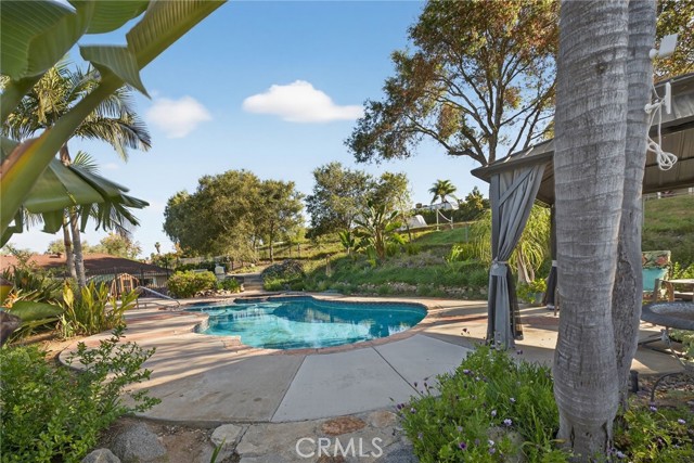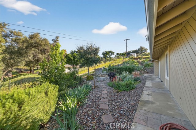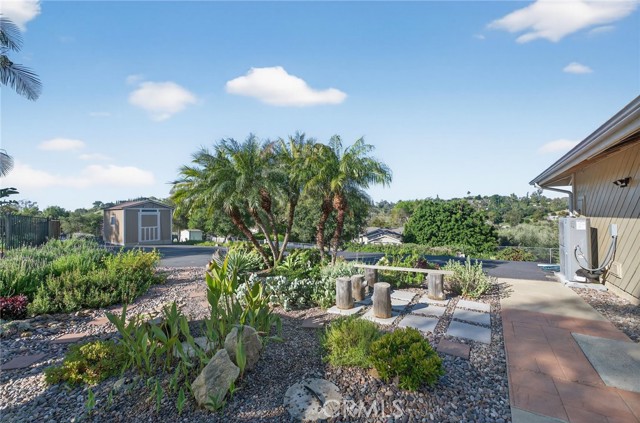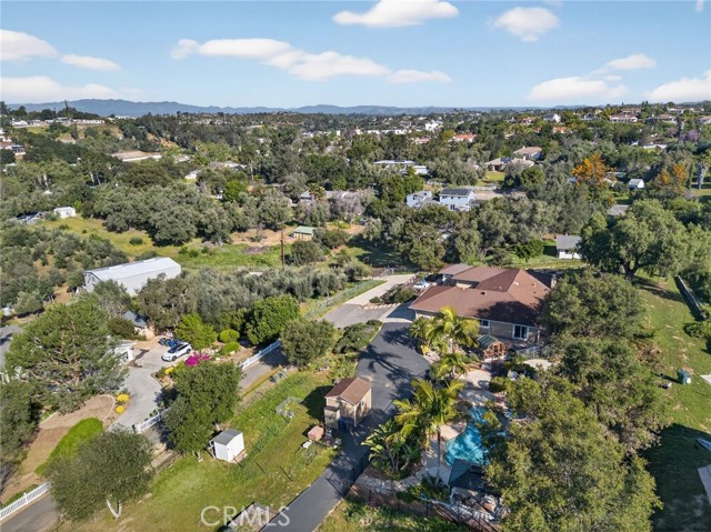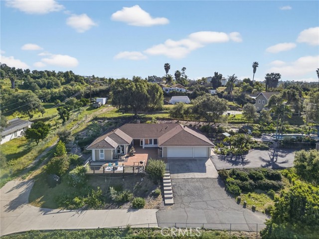 Set on 1.33 acres along a private road in a small community setting, this spacious and well-maintained single-level home offers privacy, comfort, and panoramic west-facing views. Enjoy indoor-outdoor living from the front patio, expansive deck, pool deck, and gazebo—perfect for taking in sunsets and the refreshing afternoon breeze. Inside, the home features high ceilings in the living and family rooms, anchored by a beautiful fieldstone fireplace with a wood-burning insert and fan. Tile flooring runs throughout the home, complemented by plantation shutters, Energy Star double-pane windows, and fresh interior and exterior paint in a warm earth-tone palette. The all-electric kitchen includes stainless steel appliances, a granite farmhouse sink, polished concrete countertops, and a breakfast bar that opens to the adjacent family room. An indoor laundry room with extensive storage and two oversized hallway linen closets provide excellent functionality. The spacious primary suite (18’ x 14.5’) includes a cozy reading nook, walk-in closet, dual sinks, and walk-in shower. Both secondary bedrooms are generously sized with large closets. Additional upgrades include a whole-house Aquasana water filtration system, upgraded electrical with paddle switches, LED lighting, new ceiling fans, steel gutters, in-ground drainage for hillside gardens, and a 205-gallon rainwater collection barrel for irrigation. Outdoor amenities include multiple patios and decks, a pool and spa, steel gazebo, and steel pool fencing. The gardens were redesigned in 2024 with primarily California native plants and updated irrigation, creating a low-maintenance, water-wise, and fire-conscious landscape. The in-ground pool includes a new vacuum and well-maintained pump system. The property offers ample paved parking with a turnaround driveway, a three-car garage with two openers, a 10’ x 12’ Tuff Shed, and a greenhouse. The land also includes two large flat unpaved pads (approximately 24’ x 48’ or larger) ideal for gardens, orchards, chickens, a workshop, or future projects. No solar currently installed, with ample space available if desired. Conveniently located just minutes from Fallbrook and Bonsall amenities, county parks, golf courses, and Fallbrook Airpark. Near La Paloma Elementary and Fallbrook High School, and approximately one hour to San Diego International Airport.