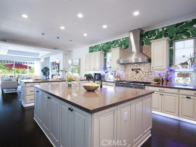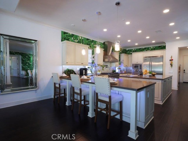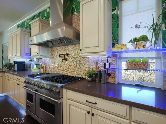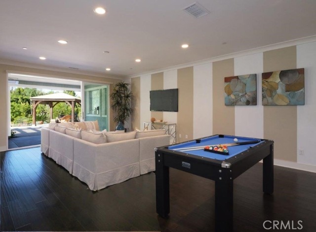 Hollywood glamour comes to life in this dazzling designer estate tucked within an exclusive cul-de-sac of just 12 newer homes, adjacent to the prestigious Rolling Hills Country Club and the world-renowned Jack Kramer Tennis Club. Extensively upgraded beyond its original design, the meticulously landscaped lot boasts a beautiful curb appeal and a manicured garden framed by cherry blossom and fruit trees. Inspired by the iconic Beverly Hills Hotel, the interiors showcase designer details such as LED accent lighting, infinity mirrors, custom wallpapers, and resort-style bathrooms. Other distinctive touches such as hand-cut floor tiles and heated bathroom floorings add a layer of refined luxury. Designed for both superb entertaining and lavish living, the home features two enclosed patios that create seamless indoor-outdoor flow to the expansive deck and landscaped grounds. The MAIN LEVEL offers a sophisticated great room for living and gatherings, opening to a charming tea room in the enclosed lanai and sliding doors to the tranquil garden. A formal dining room is complemented by an oversized gourmet kitchen featuring a large center island, Viking appliances, extensive cabinetry, quartz countertops, walk-in pantry as well as a butler’s pantry and a wine storage bar. The primary suite overlooks the lush backyard and includes an expanded walk-in closet, a resort-style bathroom, and direct access to the open deck. An additional en-suite bedroom on the main level provides ideal accommodation for family or guests, while a laundry room and a uniquely designed powder room complete the floor. The LOWER LEVEL is an entertainer’s dream, offering a media room, separate playroom in the lanai, a second powder room, wet bar, and a spacious family room with access to the back. There is also an en-suite bedroom and two generous size bedrooms sharing a full hallway bathroom. Outdoors, the backyard is thoughtfully designed for year-round enjoyment with partial coverage, two outdoor heaters, multiple seating areas, fire pit, pergola and a gazebo for relaxing or hosting guests. Garden enthusiasts will appreciate the vegetation planters, terraced gardens, and fruit trees that enhance the serene setting. A true showpiece, this dazzling home delivers a lavish lifestyle with a touch of Hollywood glam. Don’t miss this exceptional opportunity to enjoy a distinctive lifestyle!