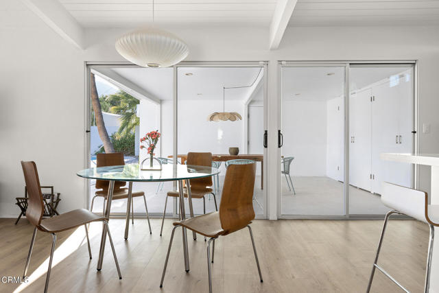 Designed by renowned architects Palmer & Krisel in 1959, this classic Mid-Century Modern Alexander home at 795 E Racquet Club Rd sits within the iconic Racquet Club Estates. The architecture showcases soaring tongue-and-groove ceilings, clerestory windows, and walls of glass that fill the interiors with natural light while creating a seamless indoor-outdoor flow. The private backyard feels like a resort with a covered breezeway dining patio, thoughtful hardscape and native landscaping, mature palms, a saltwater pool, and sweeping mountain views. The home recently received a style-appropriate refresh including newer flooring, updated lighting, a new garage door, and improvements to the kitchen and baths. Located just moments from peaceful Victoria Park and about five minutes from Downtown Palm Springs, this is a rare opportunity to own a true piece of Palm Springs architectural history with every modern comfort.