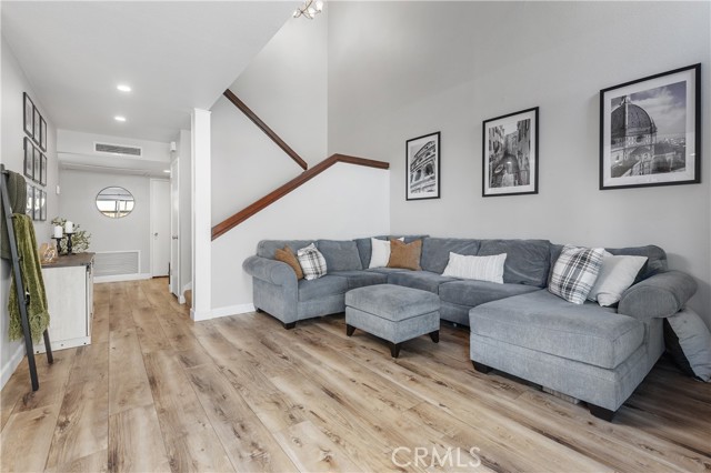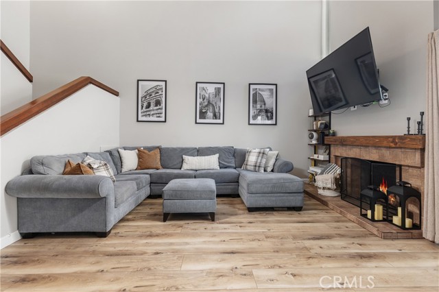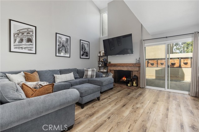 Welcome to this beautifully updated residence in the highly sought-after North Towne Park community, where modern design and everyday comfort come together in one inviting space. This 2-bedroom, 1.5-bath condo offers 1,146 square feet of thoughtfully curated living with stylish finishes and a light, airy ambiance throughout. Step inside to a bright and inviting living room featuring soaring vaulted ceilings, a cozy fireplace, and updated vinyl flooring that flows seamlessly through the main living areas. Sliding glass doors from the living room lead to a private patio accented with string lights, creating an inviting outdoor space perfect for relaxing or entertaining. At the heart of the home, the upgraded kitchen showcases quartz countertops, stainless steel appliances, white shaker cabinetry, and a striking white and black herringbone backsplash that adds the perfect designer touch. Upstairs, both bedrooms are generously sized and filled with natural light, each featuring vaulted ceilings that enhance the home’s open feel. The primary bedroom offers a comfortable retreat, complete with an ensuite bathroom, a spacious closet with built-in organizers, and a private balcony—perfect for enjoying morning coffee or unwinding in the evening. Downstairs, a convenient powder room includes an updated vanity along with an in-unit washer and dryer. Additional highlights include a one-car attached garage plus an additional covered carport space for added convenience. Residents of North Towne Park enjoy access to community amenities including a pool, spa, clubhouse, and lush greenbelts. Ideally located within the award-winning Claremont School District and just minutes from the Claremont Colleges, the vibrant shops and dining of Claremont Village, and convenient access to the 210 freeway. This home offers the perfect blend of lifestyle and location.