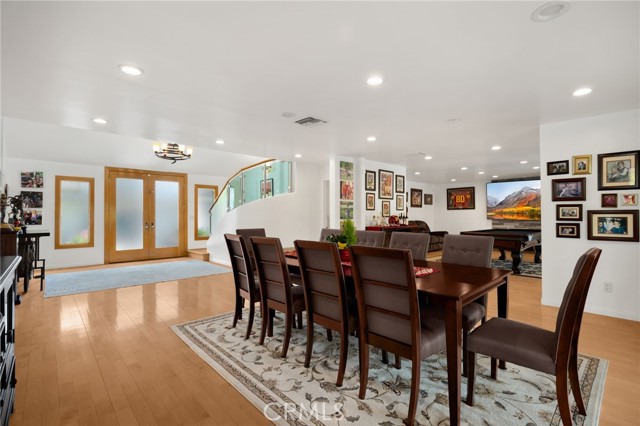 This home is a must see! SPECTACULAR VIEW HOME is in the beautiful Hadley Hills in Whittier! This beautiful home features 4 bedrooms, 4 bathrooms with 3,266 square feet of spacious living space and has beautiful finishes throughout. As you enter, you are welcomed into the beautiful foyer with views of the beautiful formal dining room that includes French doors to the beautiful backyard. Custom open-concept kitchen includes custom cabinetry for storage, stainless steel appliances including Professional grade Wolf Gas Range with 6 burners, built-in subzero refrigerator, double ovens, microwave, and warming drawer. The kitchen also features an island with table seating, desk area, and it is open to the family/theater room which is great for entertaining. This home also includes a large living room area with a cozy fireplace and has French doors to the beautiful backyard. Upstairs features a LARGE PRIMARY SUITE that includes a large bedroom area with BEAUTIFUL VIEWS off your private balcony and has spa-like bathroom that includes large jacuzzi tub, double sink vanity, large glass enclosed shower, and towel warming rack. Down the hall are additional generously sized bedrooms with plenty of closet space and a beautiful hall bathroom. This backyard is built for entertaining! The backyard features a covered patio area with two seating areas, outdoor kitchen/BBQ, beautiful lap pool, above ground spa for relaxing, and a spacious deck area with SPECTACULAR views of the rolling hills. Additional features of this home include solar-owned panels to save on your electricity bills, 2 car garage that features garage flooring tiles, storage, laundry area and built-in refrigerator. Down the hill is Historic uptown Whittier, close to shopping, restaurants and Whittier College. Come view this beautiful house and make it yours today!
