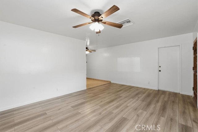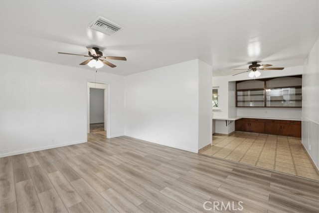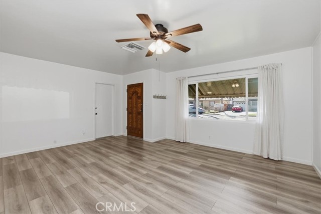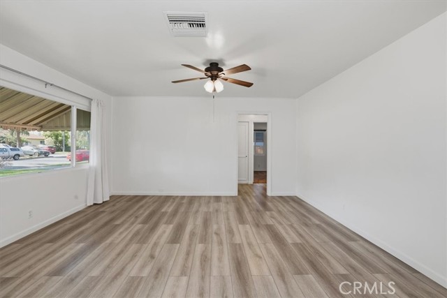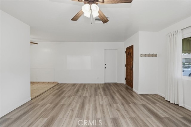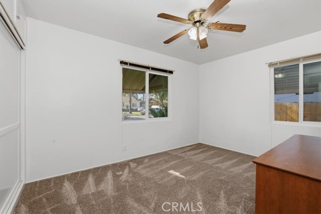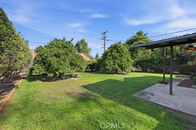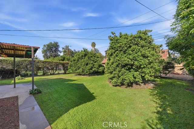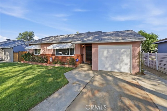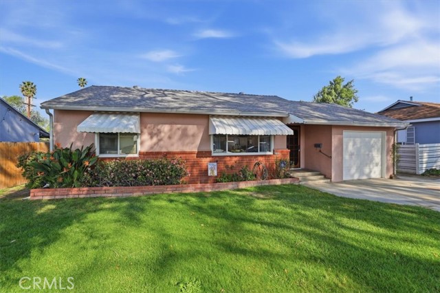 Welcome to this charming 3-bedroom, 2-bath ranch-style home offering 1,080 sq ft of comfortable living space on a spacious 8,276 sq ft lot in a quiet Riverside neighborhood. Built in 1950, this well-maintained property is an excellent opportunity for first-time buyers seeking an affordable Riverside home. The home features a bright living room with wood laminate flooring, a ceiling fan, and a large front-facing window that fills the space with natural light. The kitchen offers maple cabinets, a 5-burner stove/oven, microwave, dishwasher, refrigerator, and a convenient dining area with a built-in buffet cabinet. Decorative baseboards and interior raised panel doors add character throughout the home. All bedrooms feature ceiling fans and built-in closet cabinets for added storage. The remodeled hall bathroom features a deep-soaking tub, an updated vanity, and modern finishes. The primary bedroom is privately positioned away from the other bedrooms and features a slider leading directly to the backyard patio, along with its own full bathroom. Additional features include vinyl windows, window coverings, tile flooring, carpeted bedrooms, a security screen door, rain gutters, and a composition roof. The attached single-car garage provides direct access to the home and includes laundry hookups (gas and electric) with a convenient door to the backyard. Step outside to a park-like backyard, perfect for relaxing or entertaining, complete with a covered patio, mature citrus trees, roses, automatic sprinklers, and wood-and-chain-link fencing. The spacious yard provides plenty of room for gardening, outdoor gatherings, or future possibilities. Located in a quiet neighborhood, this property offers comfort, charm, and great potential as a starter home in Riverside.