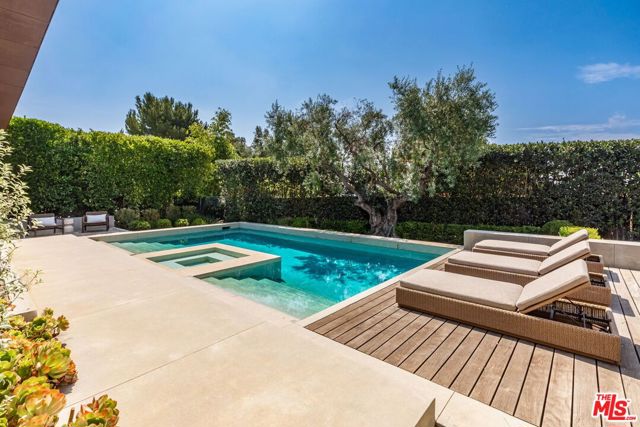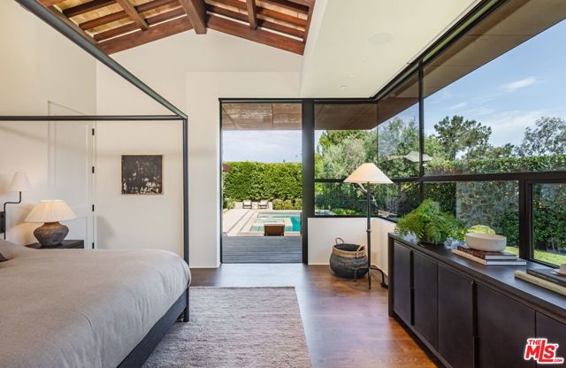 Alpine Ranch, located on one of the most prestigious streets in Beverly Hills, is a gated, custom-built Italian Villa originally designed by acclaimed architects Luis Ortega and Jose Fernandez. It has been fully reimagined as a brand-new home, impeccably redesigned and furnished by Amber Interiors. Every detail of this 5-bed, 5-bath estate has been thoughtfully upgraded, from fully renovated bathrooms, bedrooms, and living spaces to a comprehensive redesign by Amber Interiors. Their curated touches include bespoke furnishings, hand-thrown ceramics, artfully stacked books, and carefully layered textiles all included in the sale for a true turnkey experience. Interior highlights blend rustic charm with refined elegance, including exposed wood beam ceilings, steel-framed windows, and natural stone accents reminiscent of a countryside villa in the South of France. The main level is thoughtfully laid out with a sunlit formal living room that opens to a serene outdoor patio, an inviting dining room, and a chef's kitchen outfitted with Wolf appliances. Four bedrooms are located on this level, including a private primary wing that serves as a true retreat, featuring garden and pool views, a spa-quality bath with rain shower, freestanding tub, and overhead skylights that bathe the space in natural light. Upstairs, a separate private casita and an additional flex bedroom or gym open onto a generous covered balcony and rooftop deck. Set behind gates, the grounds are just as captivating as the interiors. A sprawling motor court offers ample parking for guests, while the expansive grassy yard, resort-style pool, and sun-drenched cabana invite effortless indoor-outdoor living. Thoughtful details like a private outdoor shower and a dedicated pool bathroom add both convenience and charm, creating a true sanctuary for relaxation and entertaining under the California sun.Just moments from the Beverly Hills Hotel and the world-class shopping, dining, and entertainment of Rodeo Drive, Alpine Ranch is a rare opportunity to own a fully furnished, design-forward estate in one of the most iconic neighborhoods in the world.