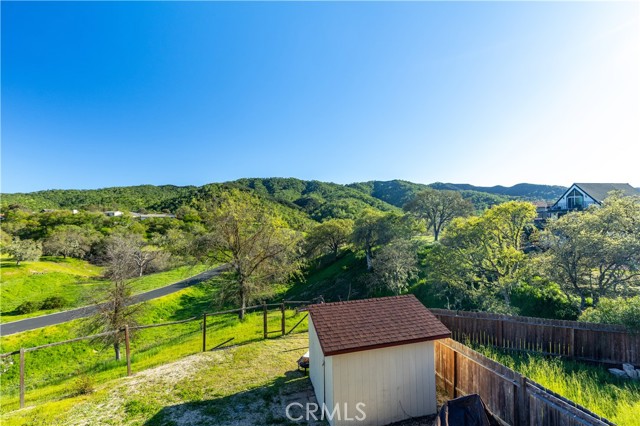 Welcome to this one-of-a-kind geodesic dome home tucked away at the end of a quiet cul-de-sac in Heritage Ranch, backing to a greenbelt with beautiful tree-covered mountain views. This unique property offers privacy, character, and a setting that feels connected to nature. The remodeled kitchen features quartz countertops, a single-basin sink, subway tile backsplash, open shelving, vinyl plank flooring, and a clean, modern design perfect for lake or everyday living. Downstairs you’ll find three bedrooms and two bathrooms, offering comfortable accommodations and functional living space. Upstairs, the main living area includes a convenient half bath and opens to expansive decking, ideal for entertaining, relaxing, and enjoying the surrounding scenery. Additional features include a spacious carport, approx 1 yr old water heater, and carpet replaced in 2022. With its distinctive architecture, scenic location, and breathtaking views, this geodesic dome home offers a rare opportunity to own something truly special just outside of Paso Robles with all of the amenities Heritage Ranch at Lake Nacimiento has to offer.