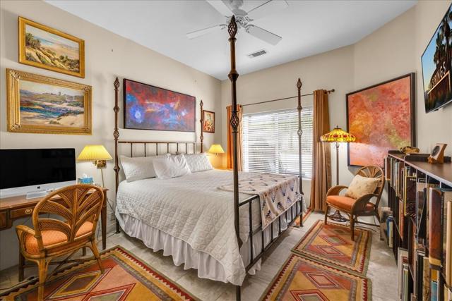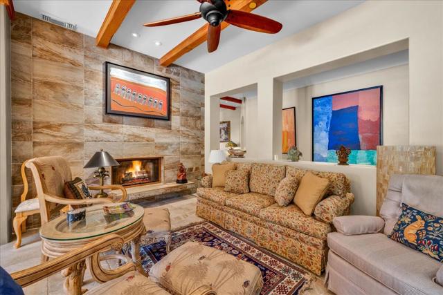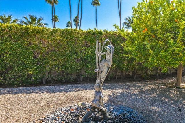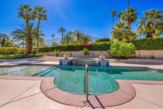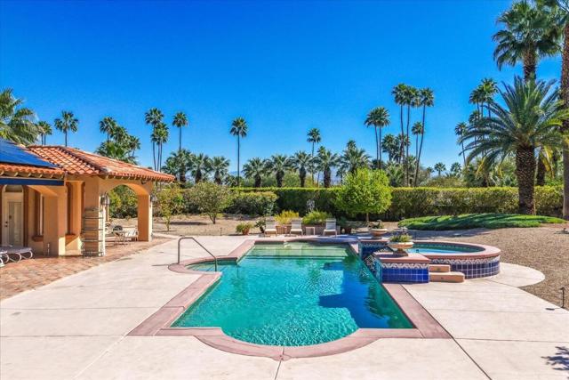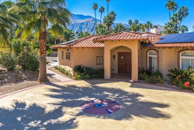 An exceptional find in the heart of iconic Palm Springs--discover Movie Colony-El Mirador neighborhood. 4 bedroom, 3 Bath Private walled and gated estate on nearly an acre of prime real estate. These size properties rarely come up for sale. Home fuses modern elegance with vintage Spanish Revival elements. Classic double door entry invite you in. Open floor plan with beamed ceilings accentuates airy feel, layout works as well for group entertaining as intimate get togethers. Postcard worthy San Jacinto Mountain & palm tree views from every window & slider! Spacious kitchen with granite counters, --tons of storage and prep space. Family room with stack stone fireplace, separate great room with media wall opens to a mind blowing expansive vacation-like backyard. Luxurious--extra wide pool for lap swimming with spa. Large, shaded patio, even a fountain! Custom hardscape with low-maintenance desert plantings enhanced by multiple old-growth palms outside the walls--only further enhance the sweeping views beyond. Plus 2-car oversized attached garage. All newly installed (owned) solar system with Tesla power walls for maximum efficiency including a mini-split Ac in garage. Ample room to expand or add a Casita, or simply enjoy as it is. Enjoy the gorgeous interior, lounge poolside, entertain, stargaze--this is the IDEAL renovated property to call HOME!