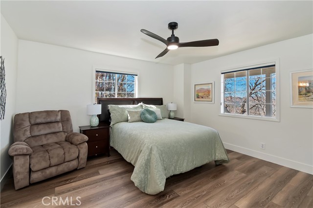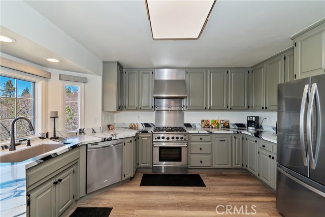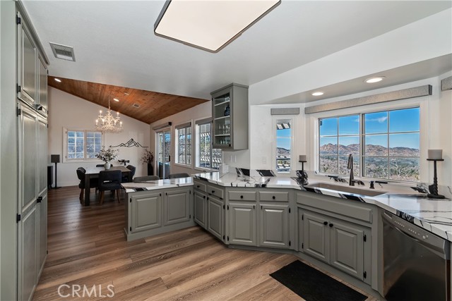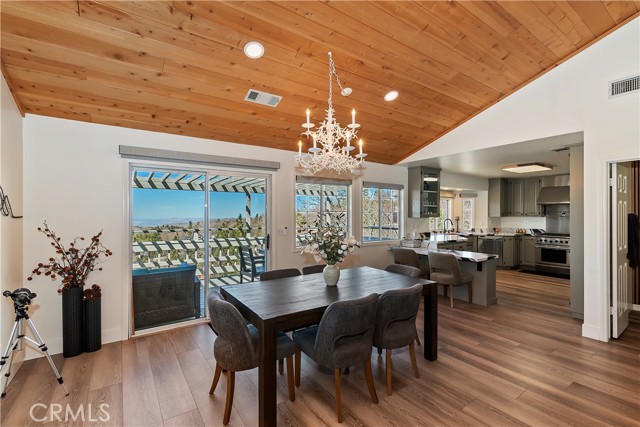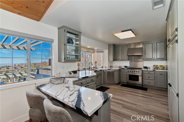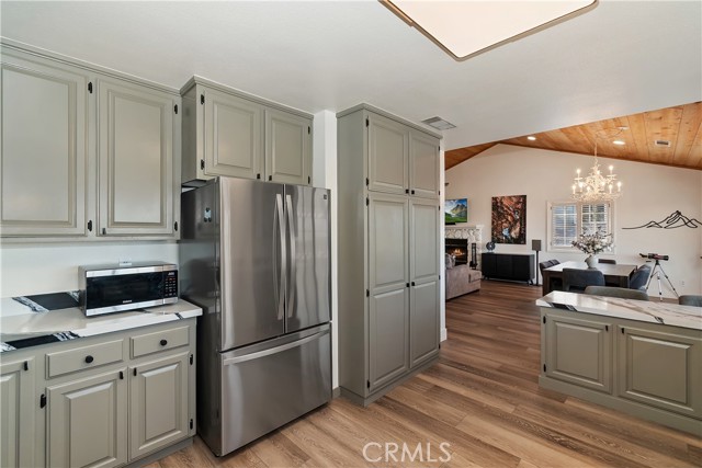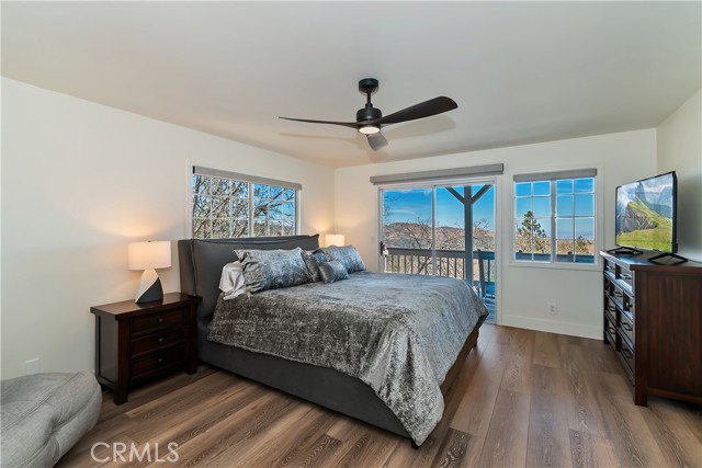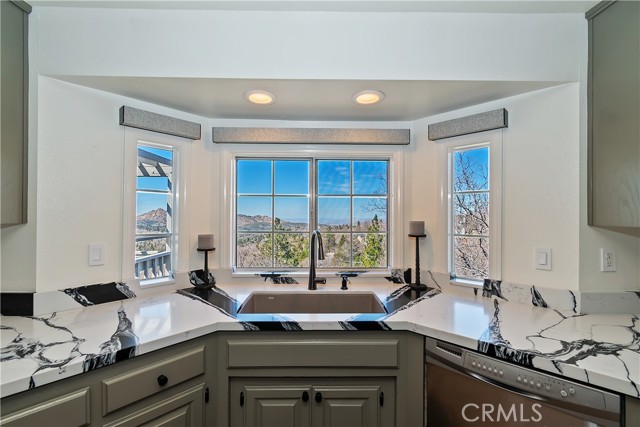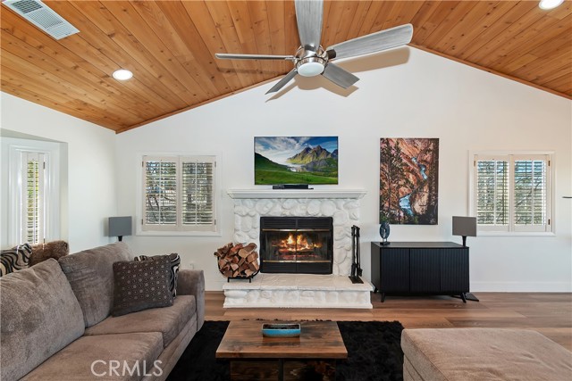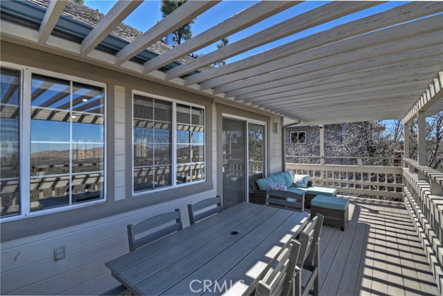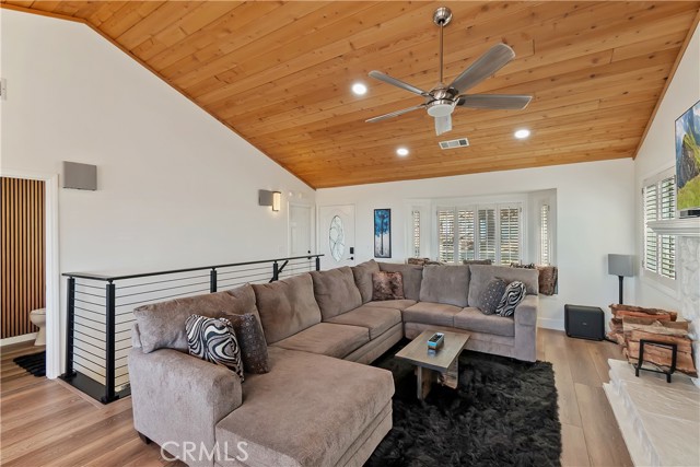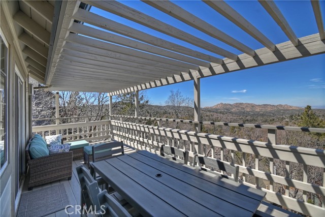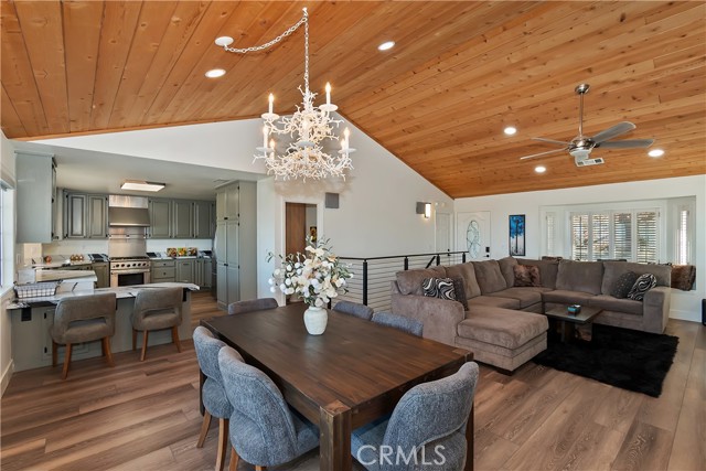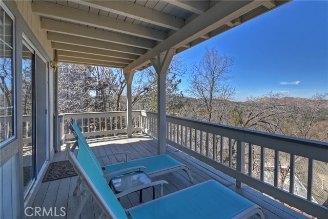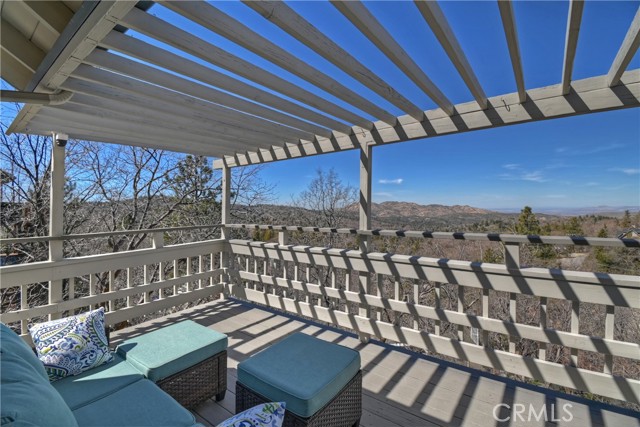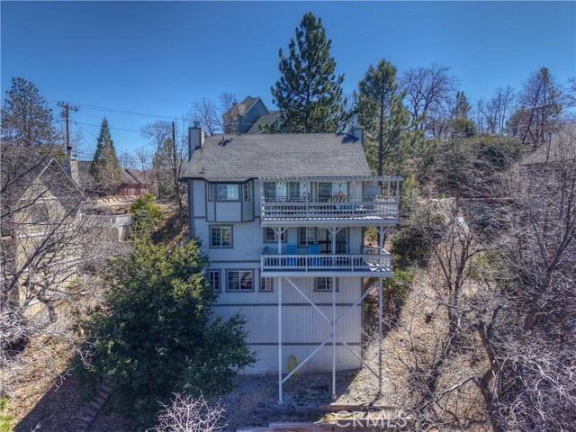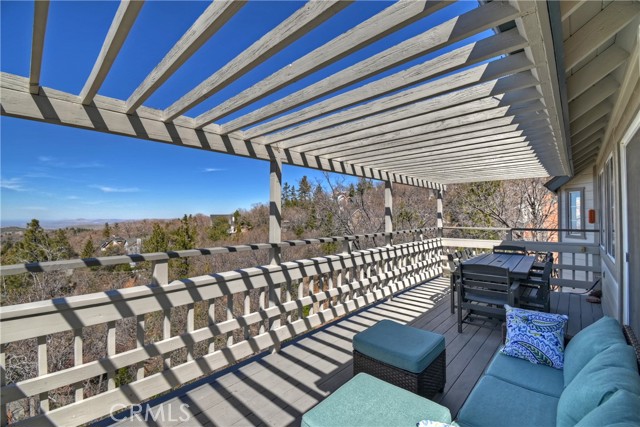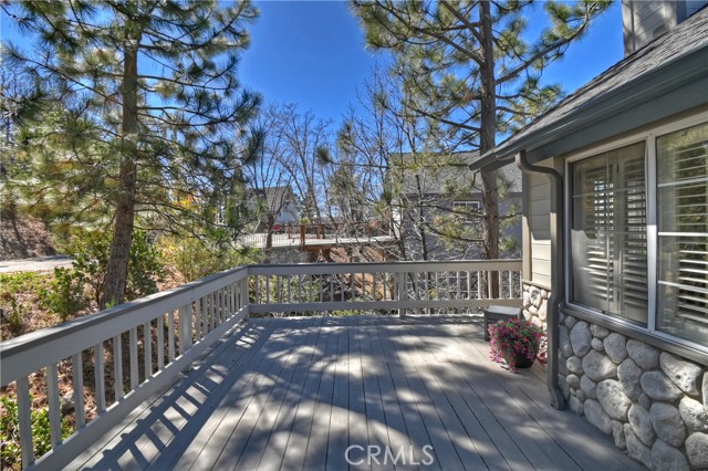 28738 Bryce Drive – Lake Arrowhead Enjoy breathtaking Pinnacles and desert city light views from this beautifully maintained 2,506 sq ft mountain home with lake rights. Offering level entry from both the front door and garage, the home combines comfort, accessibility, and spectacular mountain scenery. Step inside to a welcoming open-concept great room with vaulted ceilings and classic tongue-and-groove wood detailing, creating the perfect Lake Arrowhead mountain ambiance. Gorgeous new wide-plank wood flooring enhances the space, while large windows capture the stunning views. The remodeled kitchen features granite countertops, updated cabinetry, and stainless steel appliances, offering both style and everyday functionality. The main level also includes a beautifully remodeled powder room. One of the highlights of the home is the expansive wrap-around deck that extends from the front of the home to the back, creating multiple areas to relax, entertain, and soak in the incredible Pinnacles and desert city light views. The second level down features the primary suite with a full bathroom and private balcony, creating a peaceful retreat. Two additional guest bedrooms, a second full bathroom, and a spacious laundry/utility room complete this level. The lower level offers a cozy den and an additional bedroom suite with its own bathroom, providing great flexibility for guests or extended living. With a bit of vision, this level could potentially be adapted into a separate living space. A large build-up area provides abundant storage. Situated on a large, beautifully maintained lot, this home captures the essence of Lake Arrowhead living with dramatic views, thoughtful updates, and coveted lake rights.