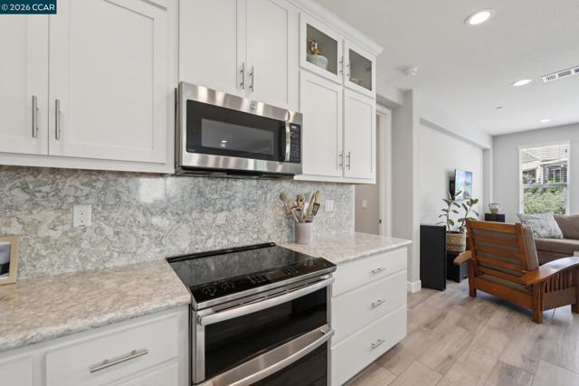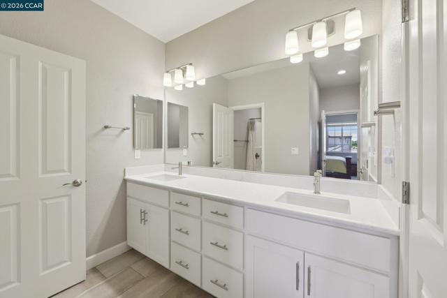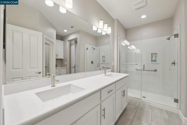 Immaculate residence in Barcelona by Shea Homes, a highly desirable gated 55+ community. This rarely available duet shows like a model and features a versatile floor plan with quality upgrades throughout. The main level offers two bedrooms and two full bathrooms, ideal for comfortable single-level living. Upstairs includes an additional bedroom, full bath, loft, and bonus room/office, perfect for guests, hobbies, or a home workspace. The home showcases white painted shaker cabinetry throughout with upgraded hardware, a gourmet kitchen cabinetry package, and built-in cabinetry with desk in the office. The kitchen is beautifully appointed with Cambria quartz countertops, upgraded backsplash and edge detail, and modern finishes. Additional features include plank tile flooring, upgraded carpet, and Hunter Douglas window coverings. A 20-year solar lease has been fully paid, offering long-term energy efficiency. Located in a gated community designed for active adults with convenient access to shopping, dining, and local amenities. A rare opportunity to own one of the most desirable duet homes in Barcelona.