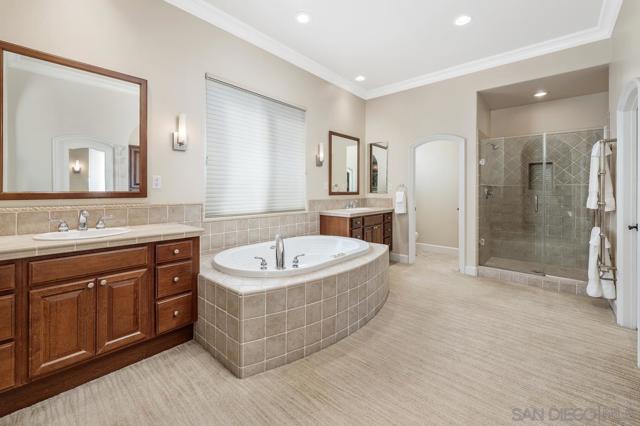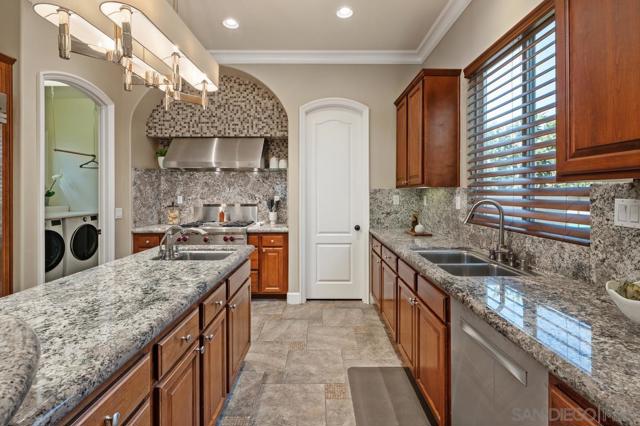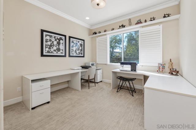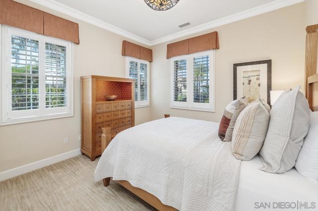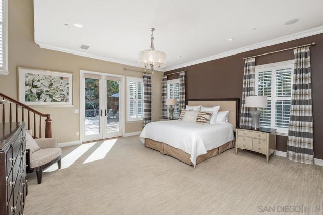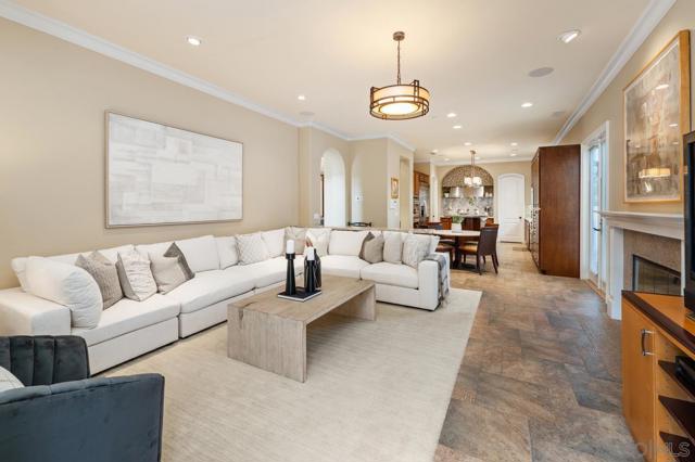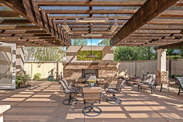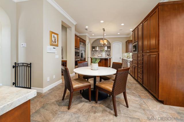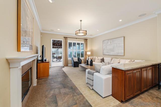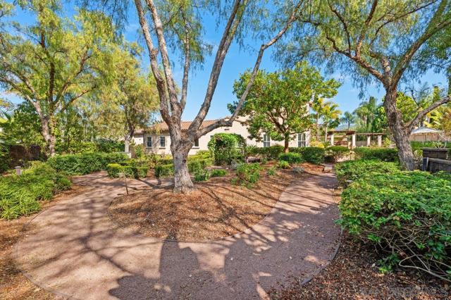 Ideally located on an oversized .46-acre lot in the gated community of Santa Monica, this pristine single-level home offers elegant entertaining spaces, a well-equipped chef's kitchen open to the breakfast area and family room, a luxurious primary suite and three comfortable secondary bedrooms, all on entry level. An enclosed loft works perfectly as an office or music room. The lovely back yard features a spacious covered patio with outdoor fireplace, overhead gas heaters and lighting, and an outdoor kitchen. Meandering trails wind through lush landscaping and past a small pond and fountain. The lot offers ample space to add an ADU or private pool. Best yet, the newer solar system with 23 panels and a Sonnen battery completely eliminates this homeowner's electric bills. You'll love the lifestyle in the guard-gated community of Santa Monica, adjacent to Santaluz! Residents here enjoy amenities including scenic hiking trails, a community pool, gym/fitness center, tennis courts, pickleball courts, private park with play equipment for children, half basketball court and a sand volleyball court. Golf courses, shops and restaurants are close by, and this home is a short stroll from Willow Grove Elementary School, in the award-winning Poway School District.