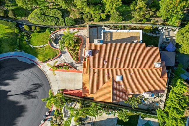Perched atop one of Anaheim Hills’ most prestigious gated enclaves, this amazing residence sits on a sprawling corner lot at the end of a quiet cul-de-sac, offering privacy and sweeping panoramic views. Soaring ceilings and walls of windows bathe the interiors in natural light, while double doors throughout create seamless connections to the meticulously landscaped grounds, crafting a perfect canvas for entertaining. The formal sitting area, anchored by a warming fireplace, flows effortlessly into the formal dining room, which opens to the backyard—ideal for sophisticated indoor-outdoor entertaining. For more casual gatherings, a second dining area opens to the spacious kitchen and expansive family room warmed by an additional fireplace, creating an inviting space for everyday living. The guest powder room on the main level ensures convenience for visitors. Upstairs, four generous bedroom suites, each with its own luxurious en-suite bathroom, provide comfort and privacy for family and guests. The primary suite is a serene retreat, complete with its own fireplace, a sprawling walk-in closet, and a private patio deck that frames stunning sunset vistas—perfect for morning coffee or evening relaxation. Outside, sculptural rock formations and cascading waterfalls create a tranquil, resort-like atmosphere, brought to life after dark by expertly designed landscape lighting. Multiple outdoor entertaining spaces—including fire pits, a built-in barbecue, and a shaded pergola—invite alfresco dining and gatherings against the backdrop of rolling hillside views. A three-car garage provides ample storage, complemented by a spacious driveway for multiple vehicles. Central heat and air throughout ensure year-round comfort. Ideally located near top-rated schools, scenic parks, shopping, and convenient freeway access, this home perfectly blends tranquility, luxury, and connectivity, offering a rare opportunity for resort-inspired living in Anaheim Hills.