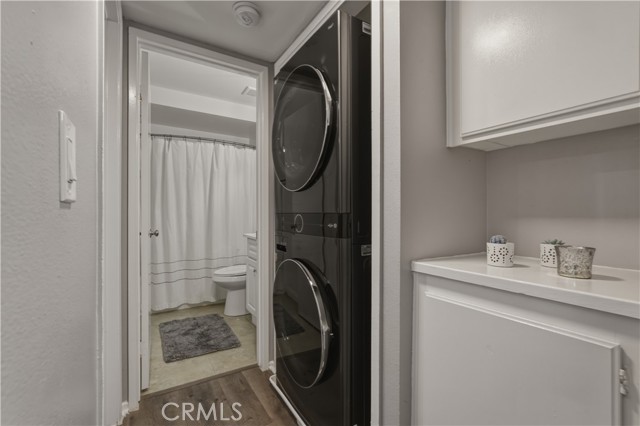 Welcome to this beautifully remodeled 2-bedroom, 2-bath lower-level condo in the desirable American Beauty community, offering comfort, style, and incredible value. This move-in-ready home features beautiful laminate flooring throughout, fresh interior paint, updated light fixtures, and newly added recessed lighting that brightens the entire space. The open and inviting floor plan welcomes you into a spacious living room filled with natural light from the private balcony, which overlooks a lush grassy area and the sparkling community pool. The living area flows seamlessly into the dining space and upgraded kitchen, making it perfect for everyday living and entertaining. The remodeled kitchen features freshly painted cabinets accented with elegant gold hardware, sleek quartz countertops, and stainless steel appliances including a stove, microwave, dishwasher, and refrigerator. The spacious primary suite offers a peaceful retreat with a walk-in closet and a private ensuite bathroom featuring a stylish sliding wood barn door. A second generously sized bedroom and an additional full bathroom provide comfortable space for guests, family, or a home office. Convenient in-unit washer and dryer are located in the hallway. Additional upgrades include removed popcorn ceilings, new bathroom mirrors, a new thermostat, a new ceiling fan in the living room, and a well-maintained central HVAC system. The water heater is also in newer condition. One of the standout features is the tandem two-car garage located directly below the unit, offering ample room for two vehicles plus additional storage shelves and space. Located in a beautifully maintained community with pool access and greenbelt views, this home offers an incredible opportunity at the best price in the entire community. Don’t miss your chance to own this stylish, move-in-ready condo in a fantastic location!