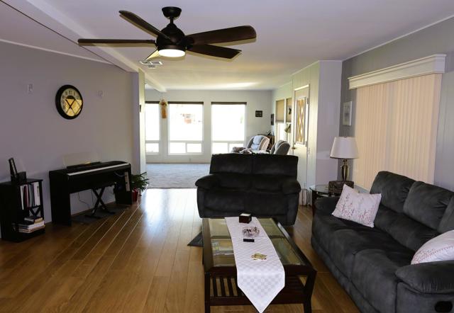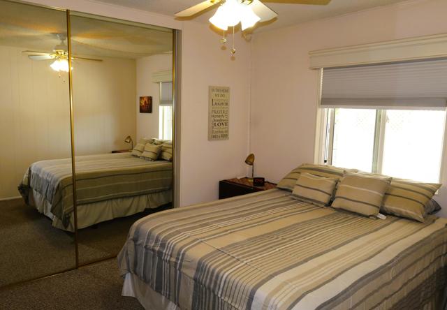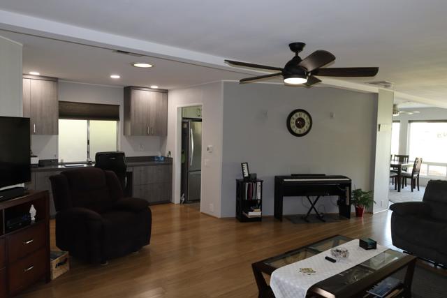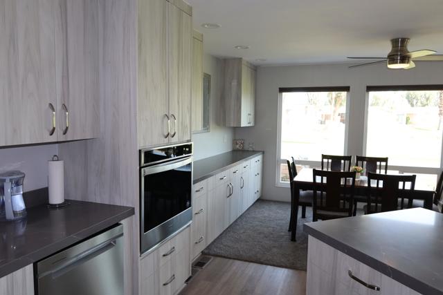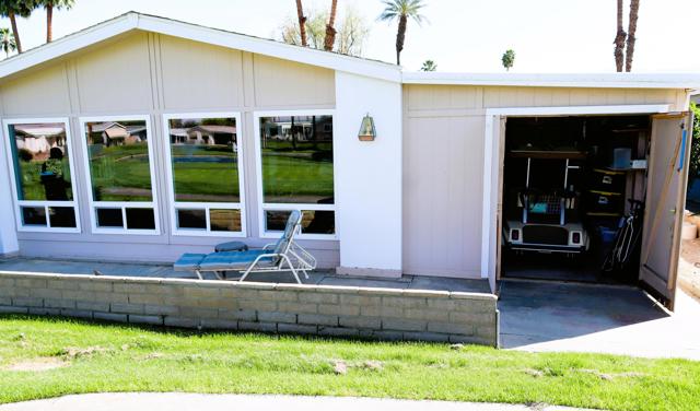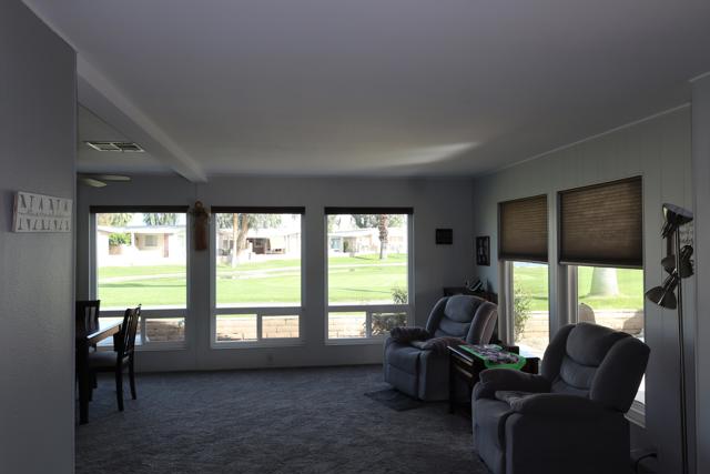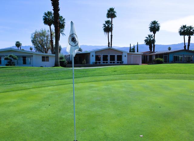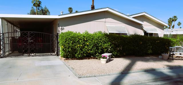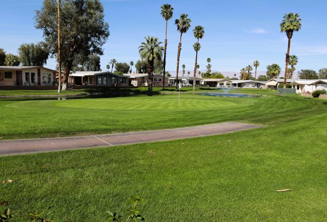 Spectacular Golf Course location with views of lake, mountains & gorgeous fairway. Perfect 55+Country Club home beautifully furnished-including the Golf Cart. Totally remodeled kitchen three years ago with custom European style cabinetry, all new appliances, recessed lighting and fabulous grey quartz counters with dining counter. The living-room & dining area look out at the views through large dual-pane picture windows. This home is move-in ready, tastefully furnished with over 1800' of living space. There is a family room with custom cabinetry & built-in computer station with USB ports for your devices. The guest suite is located in its own area offering privacy for both you and your visitors. There is a wonderful finished sun/bonus room for your enjoyment. The washer & dryer are brand new. Custom window coverings, newer ceiling fans, dual-pane windows, new sprinkler pipes & valves are just some of the extras. This home shows so well as the snowbird owners are only here part-time. The Primary bedroom is large with walk-in closet and window overlooking the golf course green space. The en-suite bath includes a walk-in soaking tub. Enjoy outdoor living & dining on the covered patio overlooking the panoramic & peaceful golf course views. You will love the rare golf cart garage with its own access onto the fairway. Portola Country Club is a great choice for either part-time or full-time desert living. You own the land, so there is no land lease. There is a 433A foundation required for any lender financing that you need. The low HOA fee of $455 includes your golf on the beautifully landscaped l8-hole par-3 golf course. The newly remodeled clubhouse includes the ''Portola Pub'' for social gathering & entertainment, a billiard room, new fitness room with views of the pool & mountains,& large social area for the many events throughout the year. Portola C.C. has three pools, Pickleball courts, Bocce Ball tournaments, Doggie Park & friendly neighbors ready to welcome you. Our location is close to El Paseo & its great shops & restaurants, McCallum Theatre, the Palm Desert Park with Aquatic Center & lovely walkways. Eisenhower hospital & medical offices are minutes away. Come take a look at this wonderful view home today & see why so many are making Portola Country Club their choice for Desert Living!