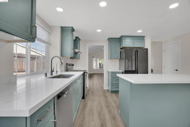 Welcome to your private oasis in the heart of Antioch! Tucked away on a quiet street with no rear neighbors, this beautifully updated single-level home offers privacy, comfort, and modern style. Featuring 4 bedrooms and 2 full bathrooms, including a private en-suite, the layout is perfect for both everyday living and entertaining. The homeowner has invested over $70,000 in recent renovations, including a remodeled kitchen, beautifully updated bathrooms, new dual pane windows & doors, new luxury vinyl plank flooring throughout, recessed lighting, and new washer and dryer. Fresh interior paint and abundant natural light enhance the home’s bright and inviting feel. The open-concept kitchen features quartz countertops, a new range hood, and a cozy eat-in area that flows seamlessly into the family and living rooms—ideal for gathering with family and friends. Step outside to your peaceful backyard retreat featuring a hot tub, tranquil pond, and plenty of space to garden, entertain, or simply relax. With no rear neighbors, it offers exceptional privacy. Located just a short walk to Hillcrest Park and minutes from Antioch BART, freeway access, shopping, dining, and schools, this move-in ready home offers the perfect balance of convenience and tranquility. [PHOTOS ARE VIRTUALLY STAGED]