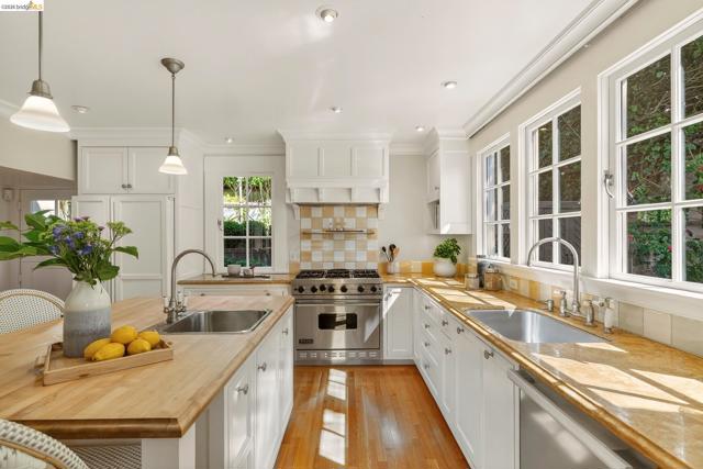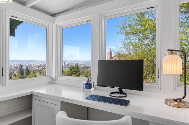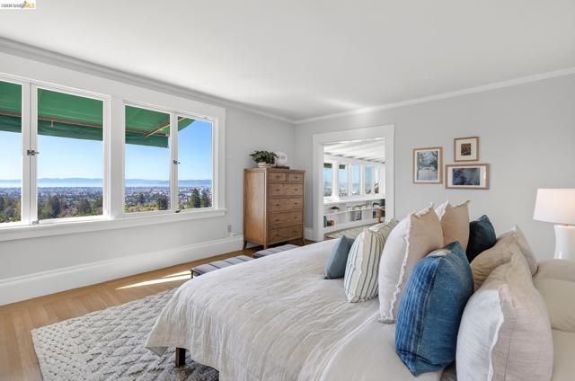 Built in 1910, this classic revival-style home offers stunning San Francisco Bay views and timeless architectural details, including hardwood floors and classic moldings, thoughtfully updated for modern living. Ideally located in central Piedmont, this home is just blocks from top-rated schools, Piedmont Park, and the new swim center. A grand foyer leads to an elegant living room with fireplace and built-in bookcases. The main level features two bedrooms, including a bright primary suite with a wall of windows capturing breathtaking Bay views, plus an adjoining office. A renovated bath offers dual marble vanities, soaking tub, and separate shower. An upper-level view room with half bath is perfect for entertaining or enjoying fireworks on July 4th and stargazing. The lower level showcases a remodeled chef’s kitchen with marble countertops, island seating, custom cabinetry, and two pantries. A breakfast room and a formal dining room with fireplace open to a large view deck for seamless indoor-outdoor living. Beautiful terraced gardens with mature plantings and a lemon tree lead to a level lawn for play or a game of fetch with your dog. Below you will discover a hidden rose garden for quiet meditation. A superb location, breathtaking views and modern updates, don't miss out. Views: Downtown