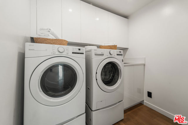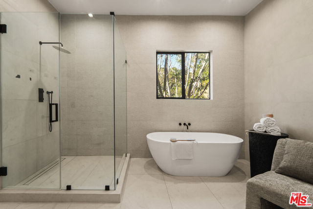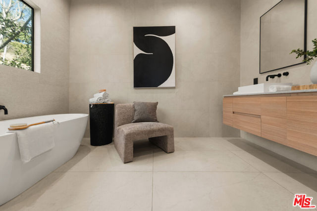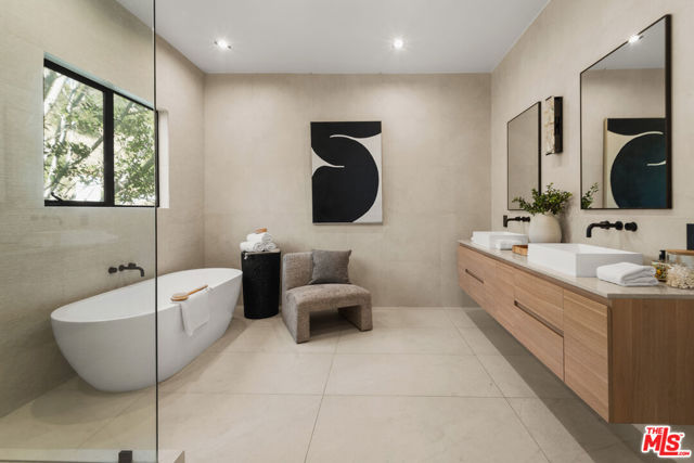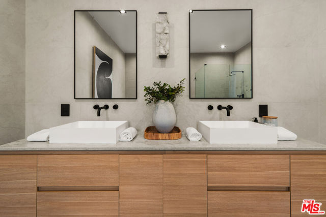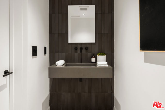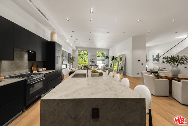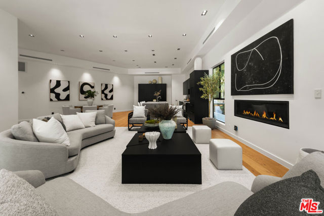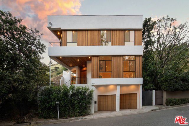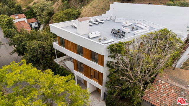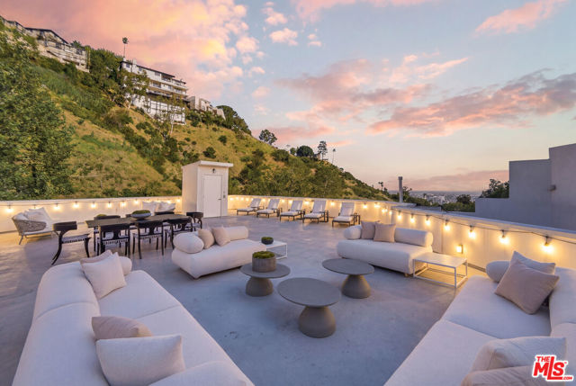 Meticulously renovated and masterfully reimagined, this exceptional modern residence in coveted Outpost Estates captures the essence of elevated Hollywood Hills living. Bathed in natural light, the main level features an expansive open-concept layout anchored by soaring 12-foot ceilings, seamlessly connecting the kitchen, dining, and living spaces--perfect for both refined entertaining and effortless everyday living. The chef's kitchen is a true showpiece, appointed with designer appliances, bespoke cabinetry, and striking Cosentino Dekton countertops. A chic powder room and a private guest suite with its own entrance complete the main floor, offering both versatility and comfort for visitors or extended stays. Upstairs, the stunning primary suite serves as a serene retreat, complete with direct access to one of two outdoor living spaces. Two additional en-suite bedrooms and a well-appointed laundry room complete the second level. At the pinnacle of the home, an expansive rooftop deck showcases sweeping canyon vistas and dazzling city-light views--an unforgettable backdrop for sunset gatherings or quiet evenings under the stars. A rare offering that seamlessly blends modern design, luxury finishes, and an unbeatable location.