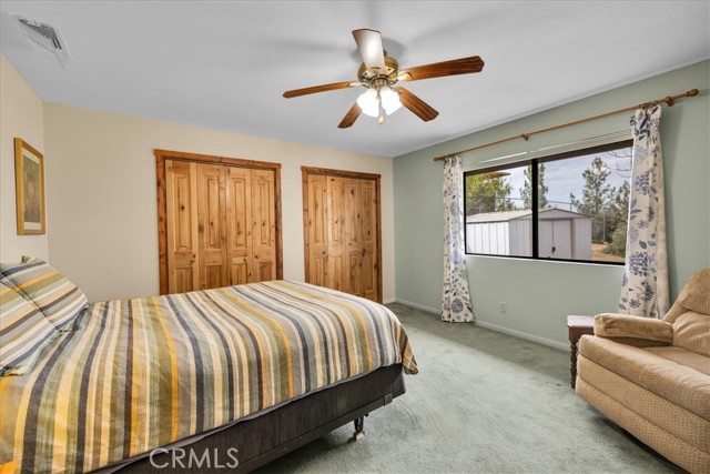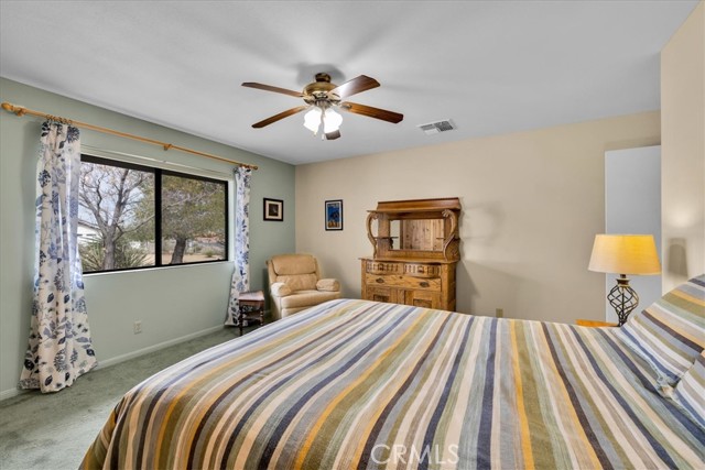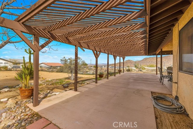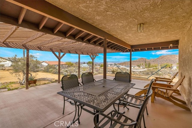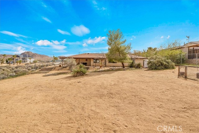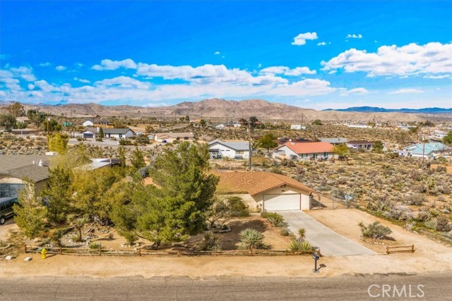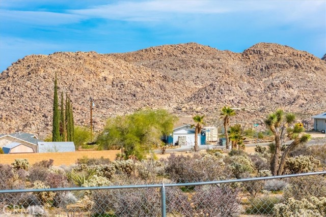 Beautiful home with 1500 square feet of well-planned space, granite countertops in kitchen and baths, and expansive territorial views. The open layout flows easily into the dining and living areas, where large windows frame the surrounding landscape and bring in natural light. Two bedrooms, 2 baths, with overhead fans in both bedrooms and above the dining area add comfort, along with central AC and heating, an up-duct evaporative cooler, and a newer heat pump. Dual pane windows provide energy efficiency throughout. Newer stove and dishwasher in kitchen. The primary suite includes natural wood closet doors and a remodeled bathroom with granite counters and a glass-enclosed shower. The guest bath has also been updated with granite countertops, continuing the cohesive finishes throughout the home. Outside, mature desert landscaping, established trees, and fencing create a private setting. The covered patio offers space to relax, entertain, or simply take in the expansive sky and distant views. A storage shed adds functionality, and the property is serviced by propane. Located just minutes from Joshua Tree National Park, the Joshua Tree Lake Campground, local hiking trails, and the vibrant art and music scene of downtown Joshua Tree, this home offers the opportunity to enjoy both quiet desert living and easy access to the area’s outdoor recreation and community events. Almost half acre lot in quiet neighborhood. A well-maintained view home in one of Joshua Tree’s sought-after neighborhoods.