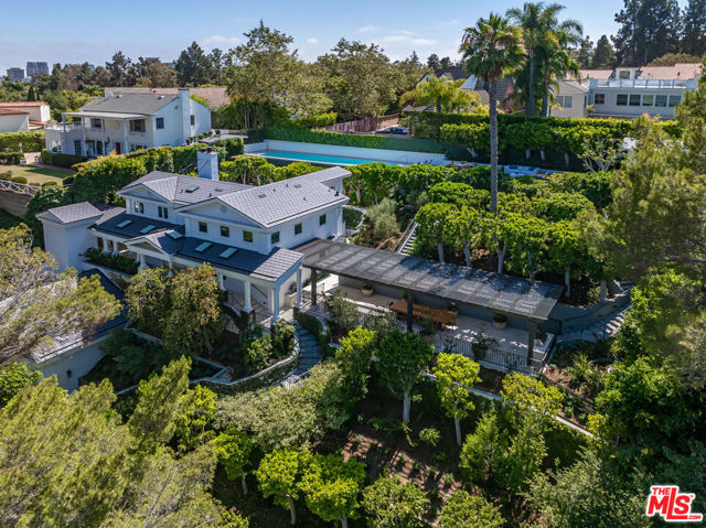 Completely reimagined prime Little Holmby traditional set on one of the neighborhood's most desirable streets. It boasts captivating curb appeal with lush landscaping by renowned landscape architect Mark Tessier, including olive trees, star jasmine vines, and ficus hedges for ultimate privacy. The expansive backyard is a true highlight, featuring a large swimmer's pool, custom outdoor trellis with four patio heaters and drapery for shade, an outdoor BBQ, and a patio area surrounded by lush trees creating a peaceful vibe. Inside, the home is bright and welcoming, showcasing fine architectural character. The spacious formal living and dining rooms are perfect for hosting, while the brand-new chef's kitchen with top-of-the-line Miele appliances is unlike anything currently available on the market. All of this flows seamlessly into the stunning backyard, pool, patio, and custom trellis, ideal for entertaining. Boasting five bedrooms, the Primary Suite includes a large closet and a state-of-the-art, newly remodeled bathroom. Notable upgrades include a new HVAC system, Lutron lighting control systems, indoor/outdoor Sonance speakers with Sonos, custom LED lighting, a commercial-grade elevator that connects the garage drop-off zone directly to the home's entry, a three-car garage with polished epoxy flooring, built-in storage, and a bonus loft for additional storage, lime wash paint in the living and dining rooms, custom drapery in every room, brass finishes throughout the home, engineered white oak flooring, a new roof, and two legal addresses/APN's. All of this is just moments away from Westwood Village, The Geffen Playhouse, and Warner Avenue Elementary, this home blends classic elegance with modern functionality, perfectly suited for indoor-outdoor California living.