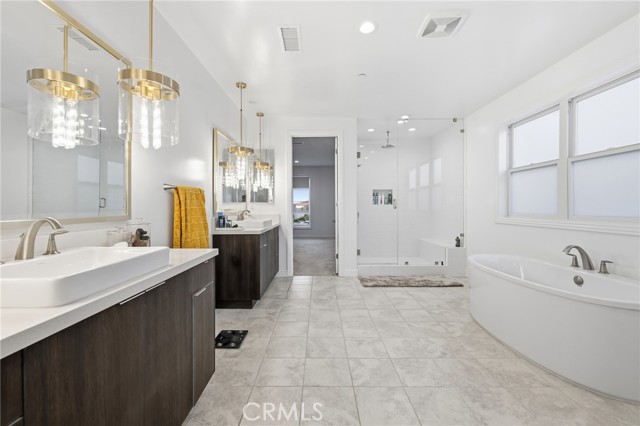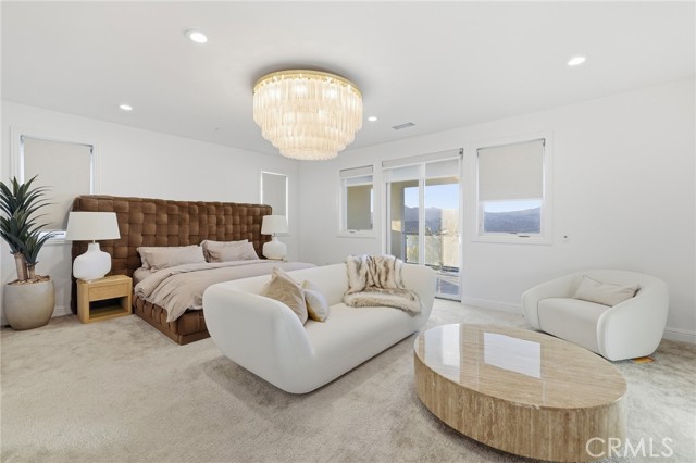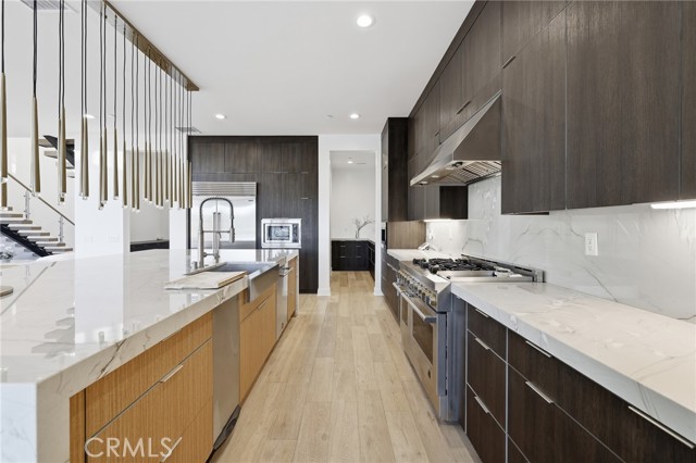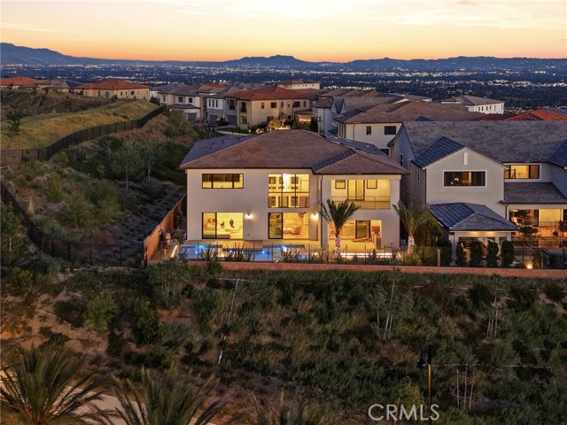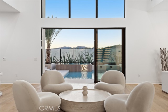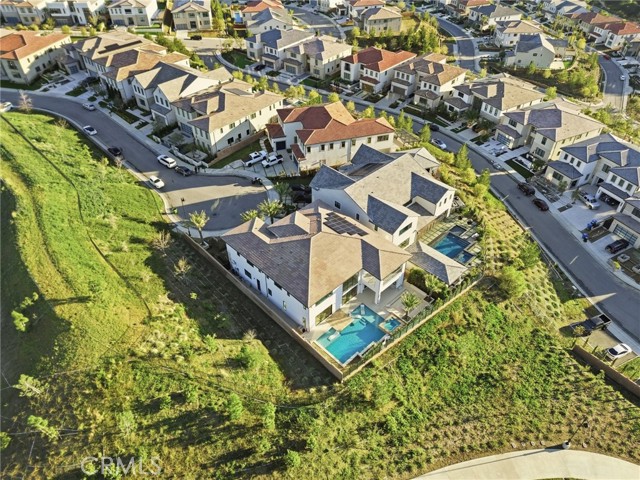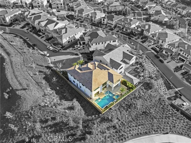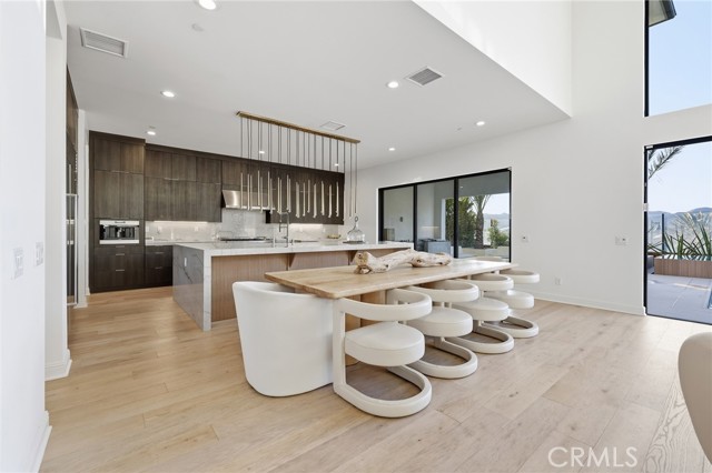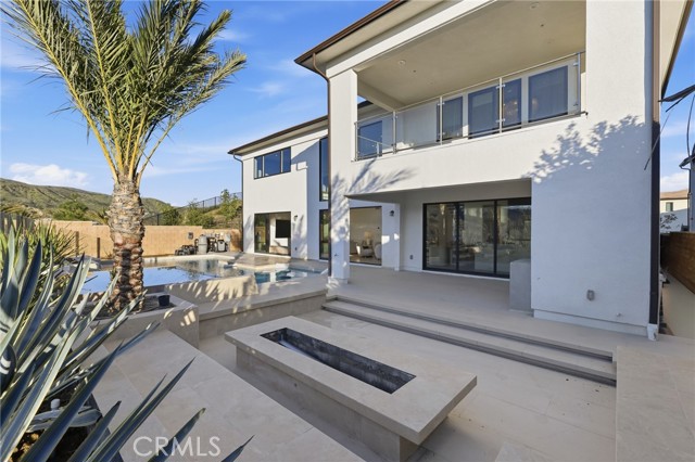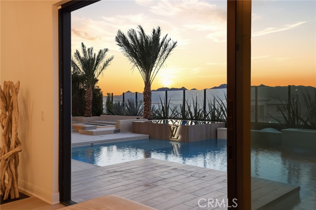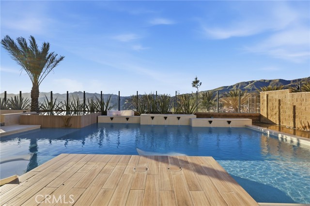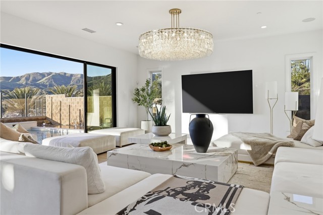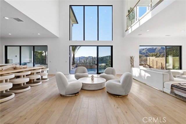 This exceptional estate offers over 5,400 square feet of thoughtfully designed living space, featuring 5 bedrooms and 6 bathrooms with a focus on scale, quality, and everyday livability. Clean architectural lines, soaring 20-foot ceilings, and an open layout create a sense of space and light throughout, while a striking floating staircase and Restoration Hardware chandeliers add a refined, elevated feel. Hardwood flooring spans the main level, tying the living spaces together with warmth and continuity. The kitchen is designed to impress, featuring Monte Blanc quartz countertops, custom cabinetry with full-height doors, and a premium appliance suite including Wolf, JennAir, and Sub-Zero. It opens seamlessly to the main living areas, where a built-in surround sound system enhances both entertaining and everyday comfort. Upstairs, the primary suite offers a private retreat with a spacious layout, spa-like bathroom, and generous walk-in closets. The outdoor space is equally well-appointed, highlighted by an oversized Pebble Tec pool with dual Baja shelves and an infinity spa, all surrounded by sleek porcelain slab hardscaping in both the front and back yards. Designed for both entertaining and relaxation, the setting offers a clean, modern aesthetic with low-maintenance appeal. With its strong architectural presence, high-end finishes, and well-executed design, this home delivers a balanced combination of luxury, comfort, and functionality.