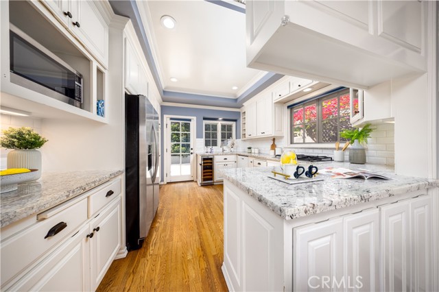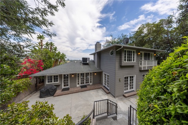 Located in the highly desirable San Rafael Hills, this charming Cape Cod–style residence showcases breathtaking panoramic views and thoughtfully curated updates throughout. A formal entry welcomes you into an elegant living room featuring a classic fireplace, French doors, and an adjoining dining area complete with built-in cabinetry, rich hardwood flooring, and recessed lighting. Designed with a split-level layout to maximize the sweeping foothill vistas, the home offers an updated kitchen appointed with custom cabinetry, granite countertops, and stainless steel appliances. The spacious primary suite serves as a private retreat, highlighted by dual closets, French doors, and a picturesque window framing the surrounding hills. The en-suite bathroom is beautifully appointed with a dual-sink granite vanity, a separate shower, and an oversized jetted soaking tub. On the lower level, two well-sized bedrooms share a full bath, accompanied by a comfortable family room with French doors that open directly to the rear patio—ideal for indoor-outdoor living. At the top of the property, a private terrace provides an exceptional setting for entertaining or simply enjoying the tranquil, scenic surroundings. Ideally situated in one of Pasadena’s most sought-after neighborhoods, this home offers the perfect balance of charm and convenience. Just minutes from Old Town Pasadena, Caltech, the Rose Bowl, and top-rated schools, residents enjoy easy access to premier shopping, dining, and cultural attractions, all while benefiting from a peaceful, tree-lined setting. Convenient freeway access also allows for an effortless commute to Downtown Los Angeles and beyond.