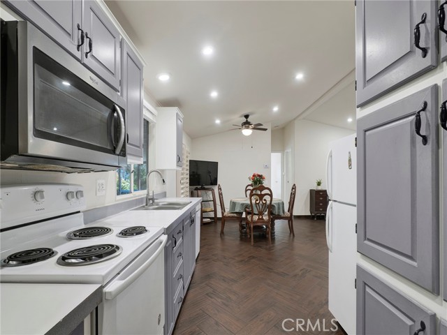 Welcome to this beautiful 3-bedroom, 2-bathroom manufactured home located in The Summit gated community in West Hills. Offering 1,143 square feet of comfortable living space, this home also features a brand new roof, providing added value and peace of mind. Upon entering, you’re greeted by a bright and spacious open-concept living area, featuring quality tile wood flooring, recessed lighting, vaulted ceilings, and multiple skylights that fill the home with natural light. The inviting common area seamlessly blends living and dining spaces, enhanced by elegant plantation shutters throughout. The kitchen is well-equipped with all essential appliances, ample cabinetry, and easy access to an adjacent laundry room—perfect for everyday convenience. The thoughtfully designed floor plan places the primary suite in its own private wing, complete with a walk-in closet and an ensuite bathroom. On the opposite side of the home, you’ll find two generously sized guest bedrooms with ample closet space, along with a shared hallway bathroom. Step outside to enjoy the home’s fantastic outdoor spaces, including an enclosed front patio and a large side patio featuring turf, pavers, and tall wood fencing for added privacy—ideal for relaxing or entertaining. The rear of the home offers low-maintenance rock landscaping, multiple storage sheds, and a flat paved area for additional outdoor use. The attached carport provides parking for three or more vehicles and includes an EV-compatible outlet for added efficiency and modern convenience. As part of The Summit community, residents enjoy access to a variety of amenities, including a recreation center, pool, spa, picnic areas, and RV parking. Don’t miss this incredible opportunity to own a move-in ready home in one of West Hills’ most scenic gated communities!